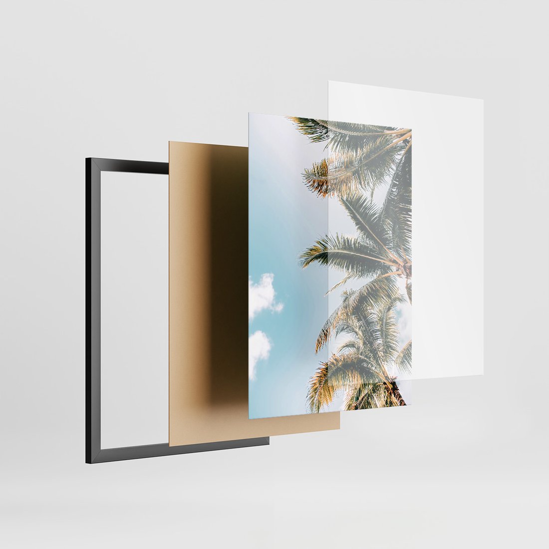 Zestaw obrazy w ramie, plakaty - palmy, morze, woda - rama czarna