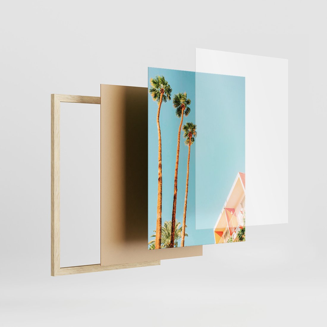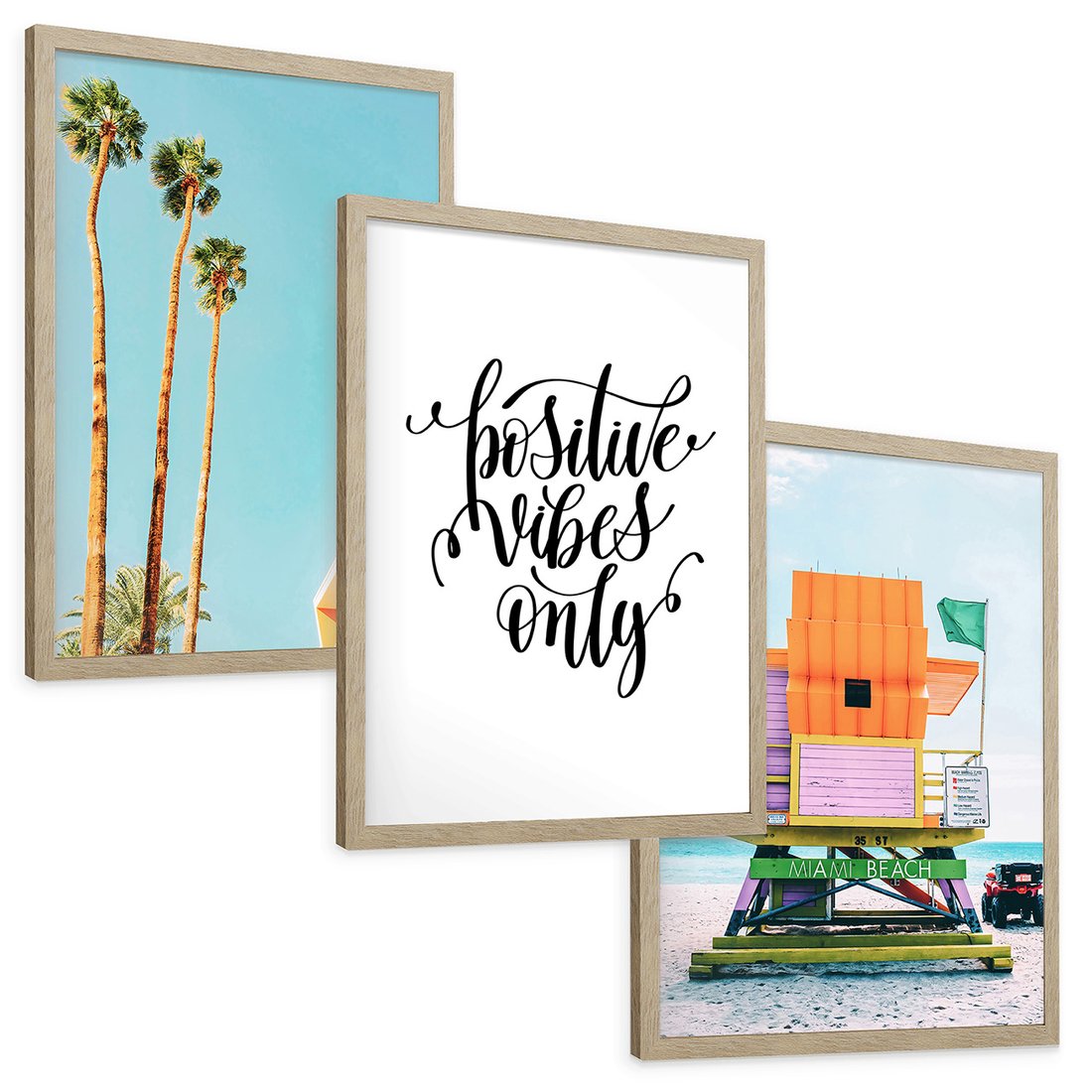 Zestaw obrazy w ramie, plakaty - palmy, plaża, tropikalny - rama drewno