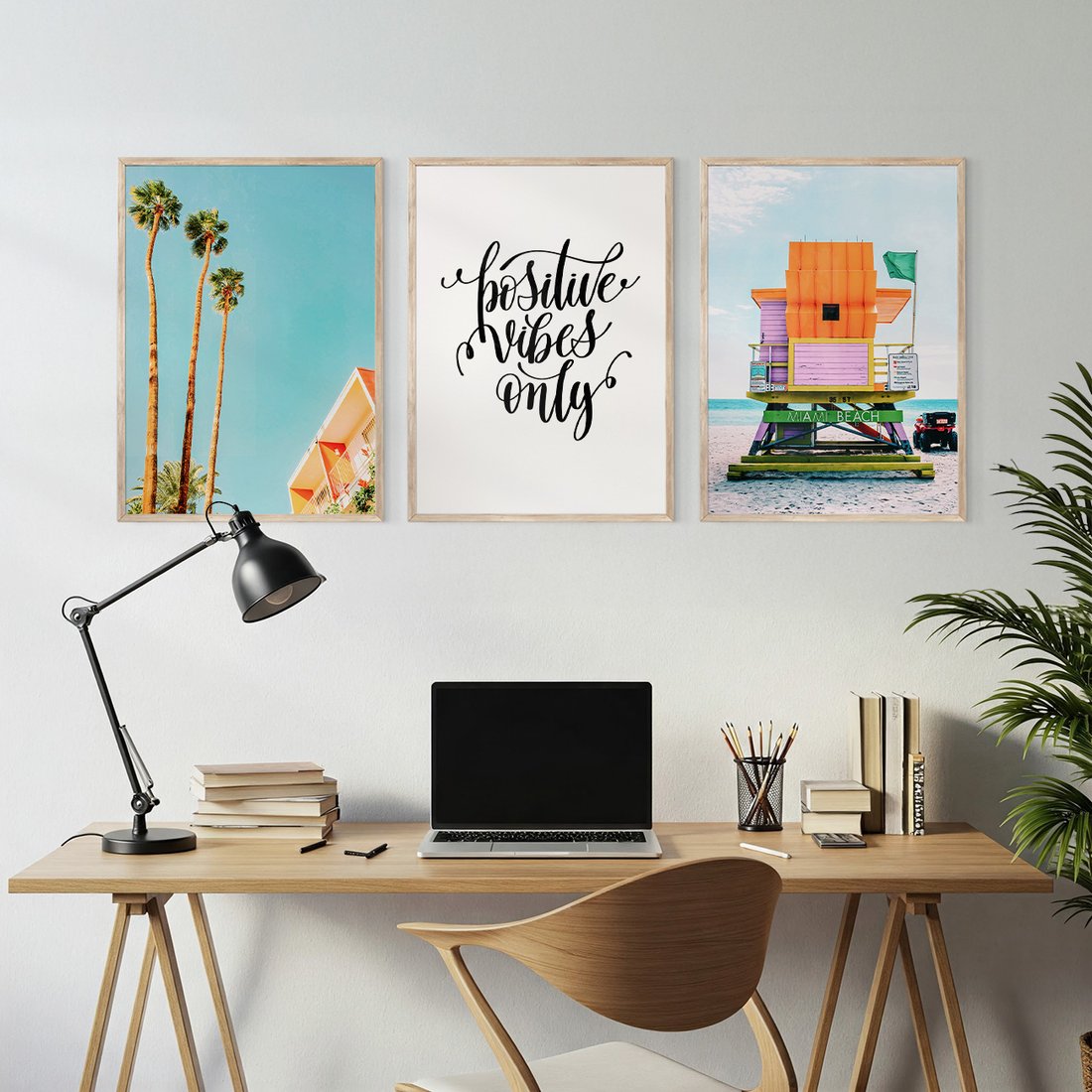 Przenieś piękno sztuki do swojego domu dzięki naszemu starannie skomponowanemu produktowi zestaw obrazów palmy, plaża, tropikalny. Każdy plakat, oprawiony w elegancką ramę, łączy w sobie estetykę i trwałość. Uniwersalne wzornictwo sprawia, że te dekoracje ścienne doskonale komponują się z różnymi stylami wnętrz, od nowoczesnych po klasyczne. Łatwość montażu pozwala na szybką i bezproblemową metamorfozę Twojej przestrzeni. To również idealny pomysł na wyszukany prezent, który z pewnością zachwyci.