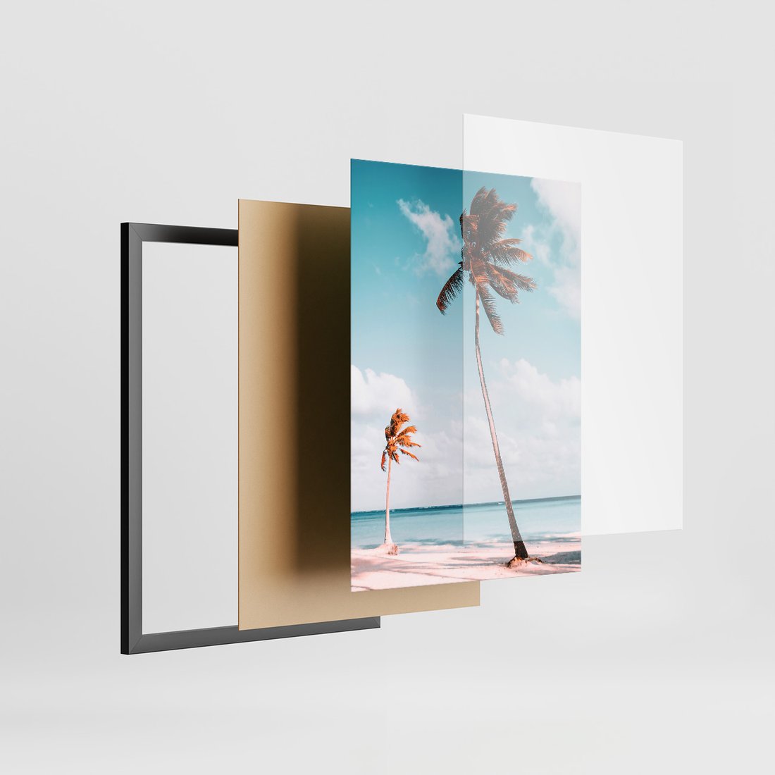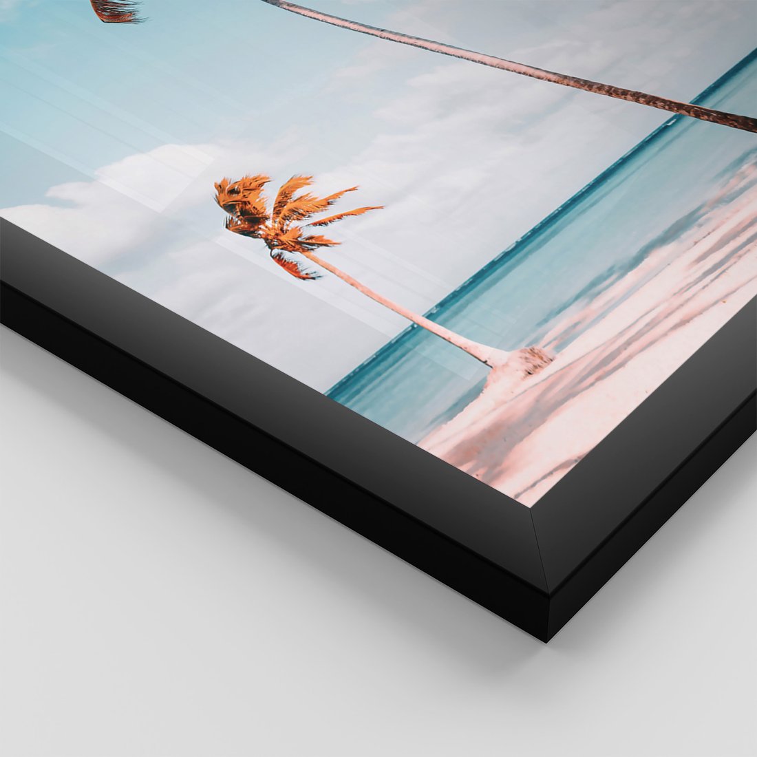 Zestaw obrazy w ramie, plakaty - palmy, skały, niebo - rama czarna