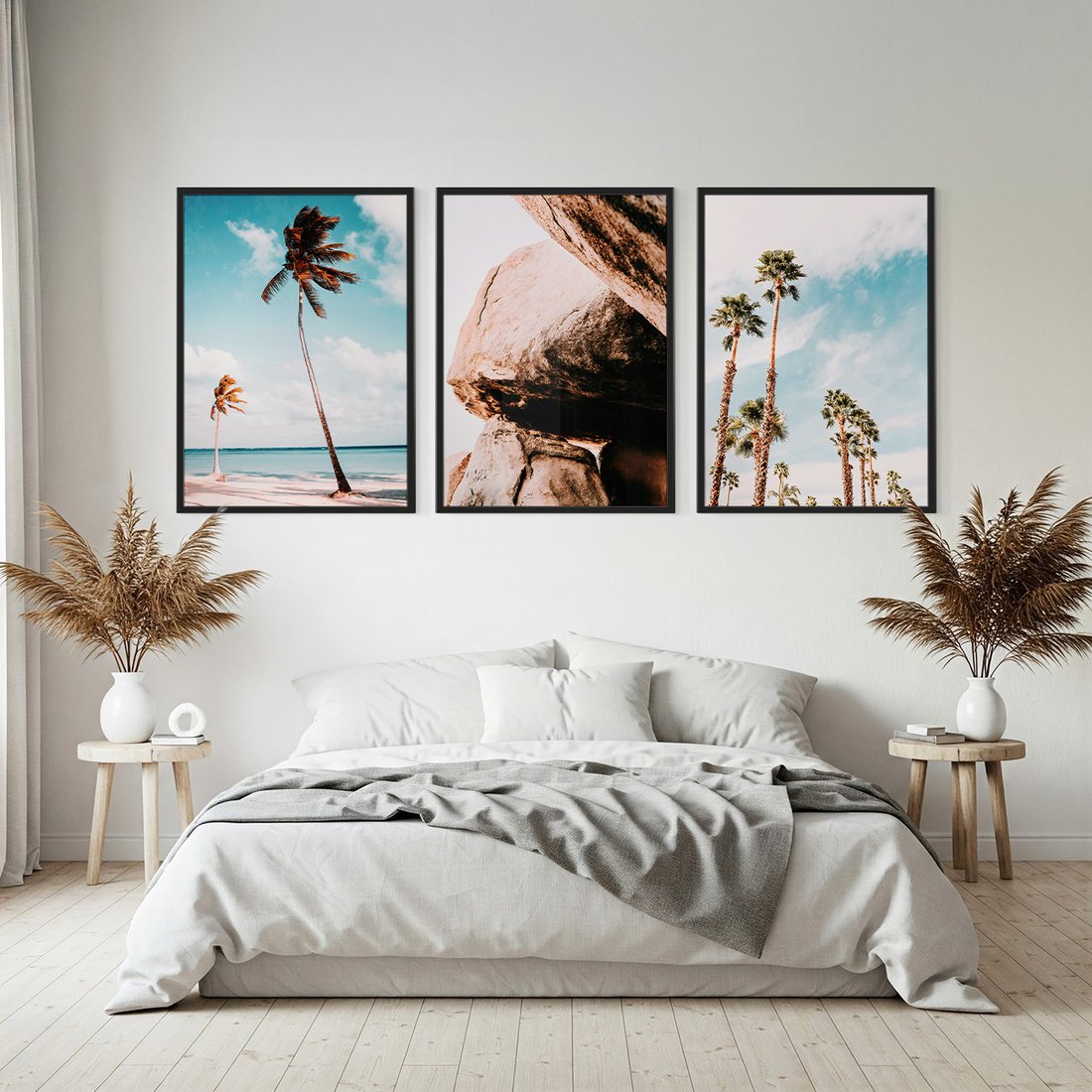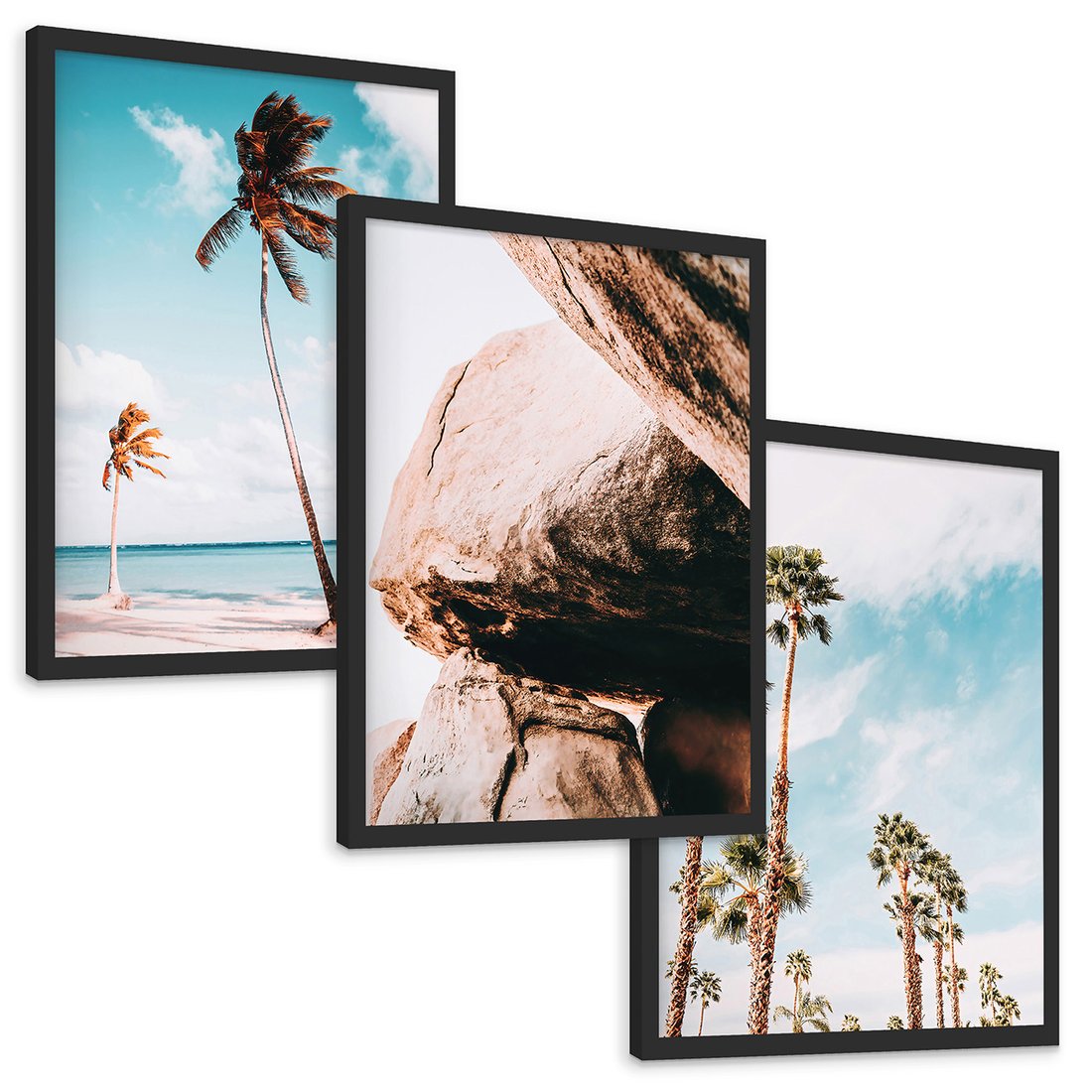 • Zestaw obrazy w ramie, plakaty - palmy, skały, niebo