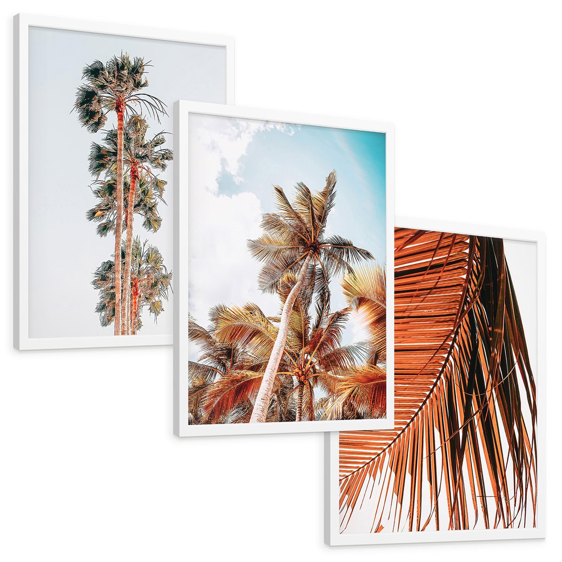 Zestaw obrazy w ramie, plakaty - palmy, tropikalny, lato - rama biała