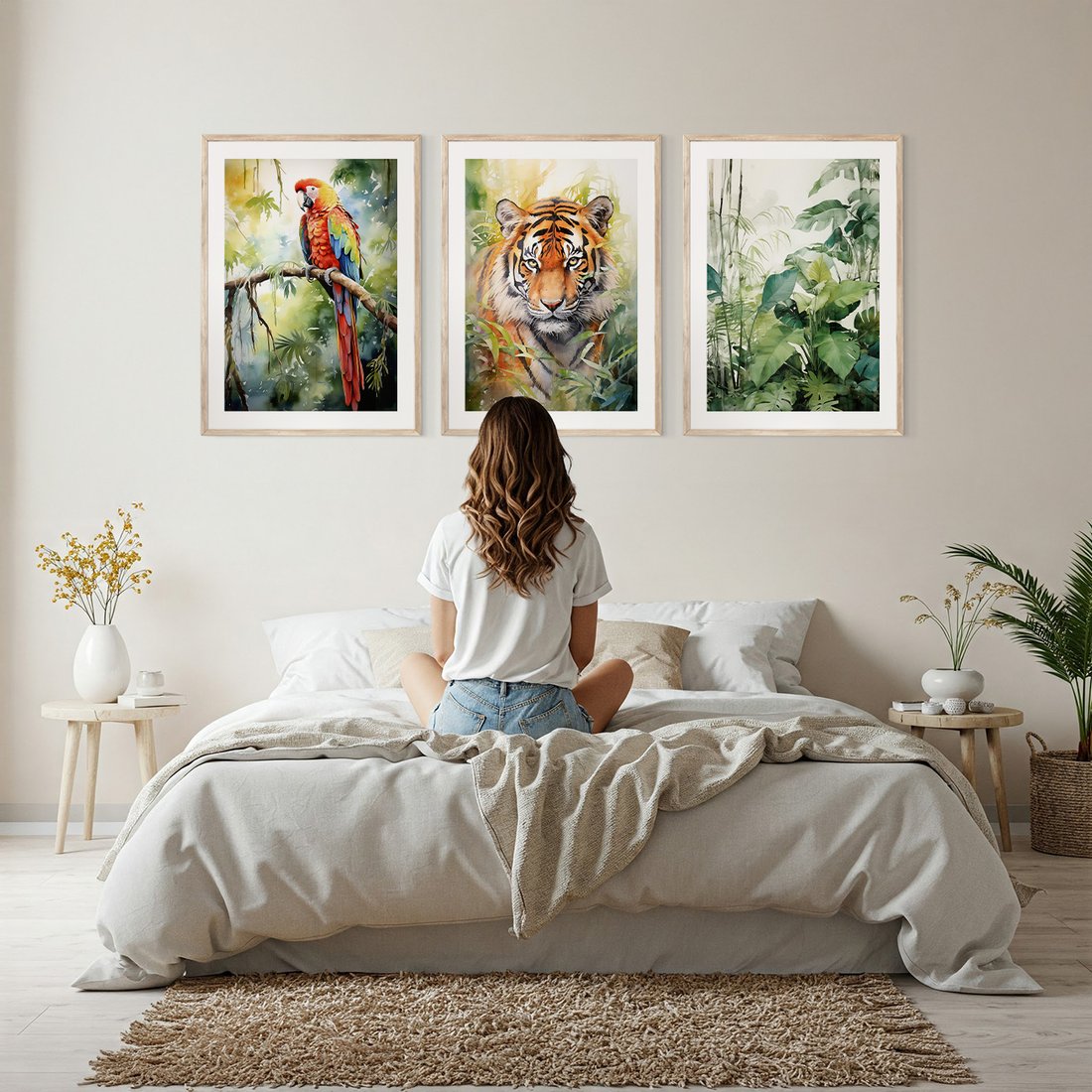 Przenieś piękno sztuki do swojego domu dzięki naszemu starannie skomponowanemu produktowi zestaw obrazów papuga, liście, tygrys. Każdy plakat, oprawiony w elegancką ramę, łączy w sobie estetykę i trwałość. Uniwersalne wzornictwo sprawia, że te dekoracje ścienne doskonale komponują się z różnymi stylami wnętrz, od nowoczesnych po klasyczne. Łatwość montażu pozwala na szybką i bezproblemową metamorfozę Twojej przestrzeni. To również idealny pomysł na wyszukany prezent, który z pewnością zachwyci.