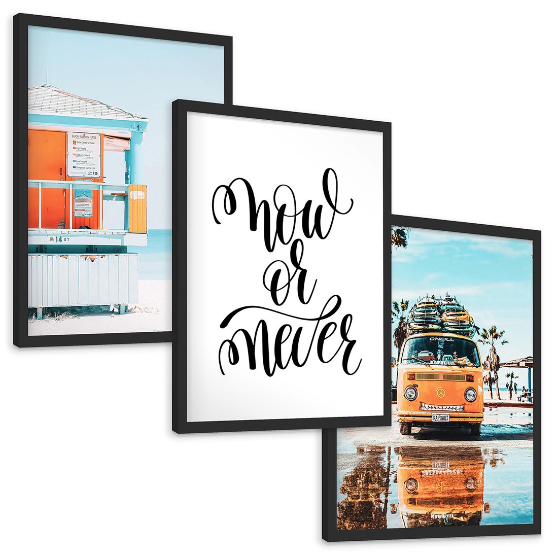 • Zestaw obrazy w ramie, plakaty - plaża, lato, wakacje