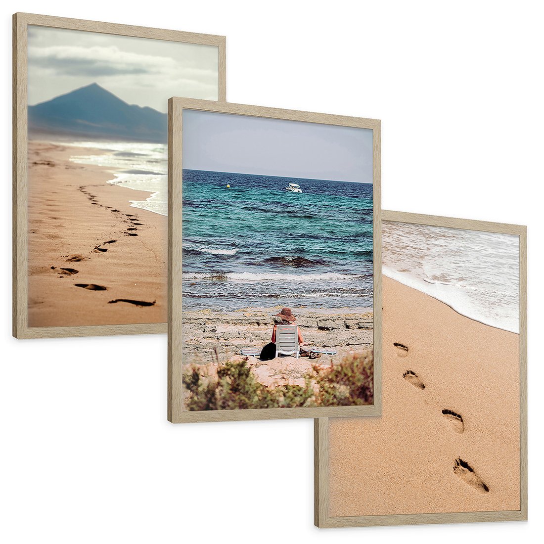 Zestaw obrazy w ramie, plakaty - plaża, morze, piasek - rama drewno