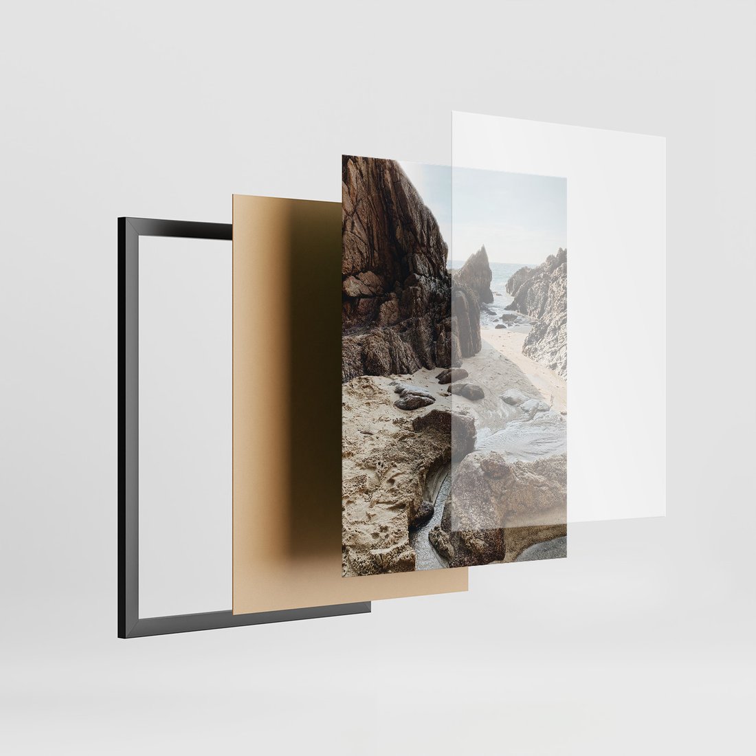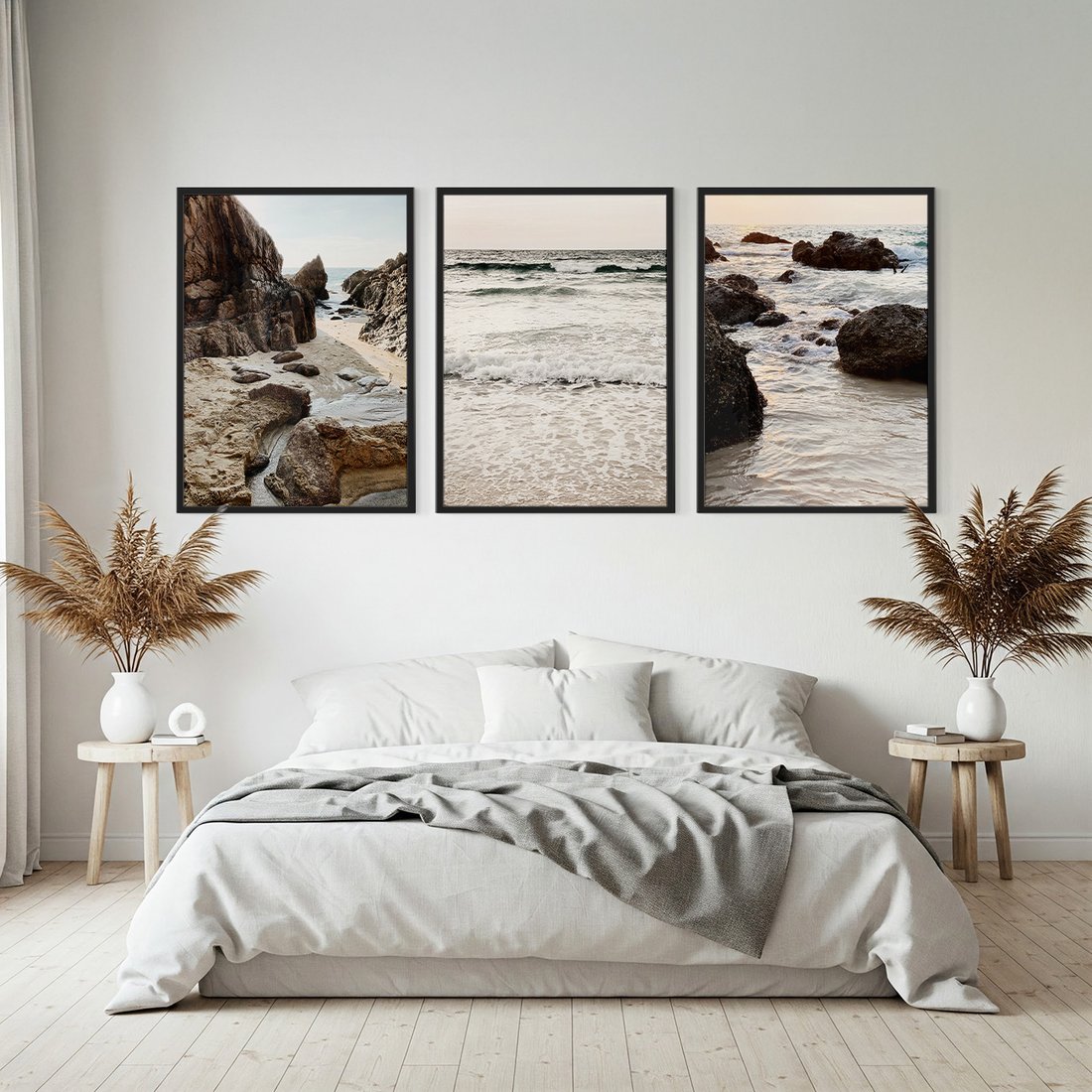 Zestaw obrazy w ramie, plakaty - plaża, morze, skały - rama czarna