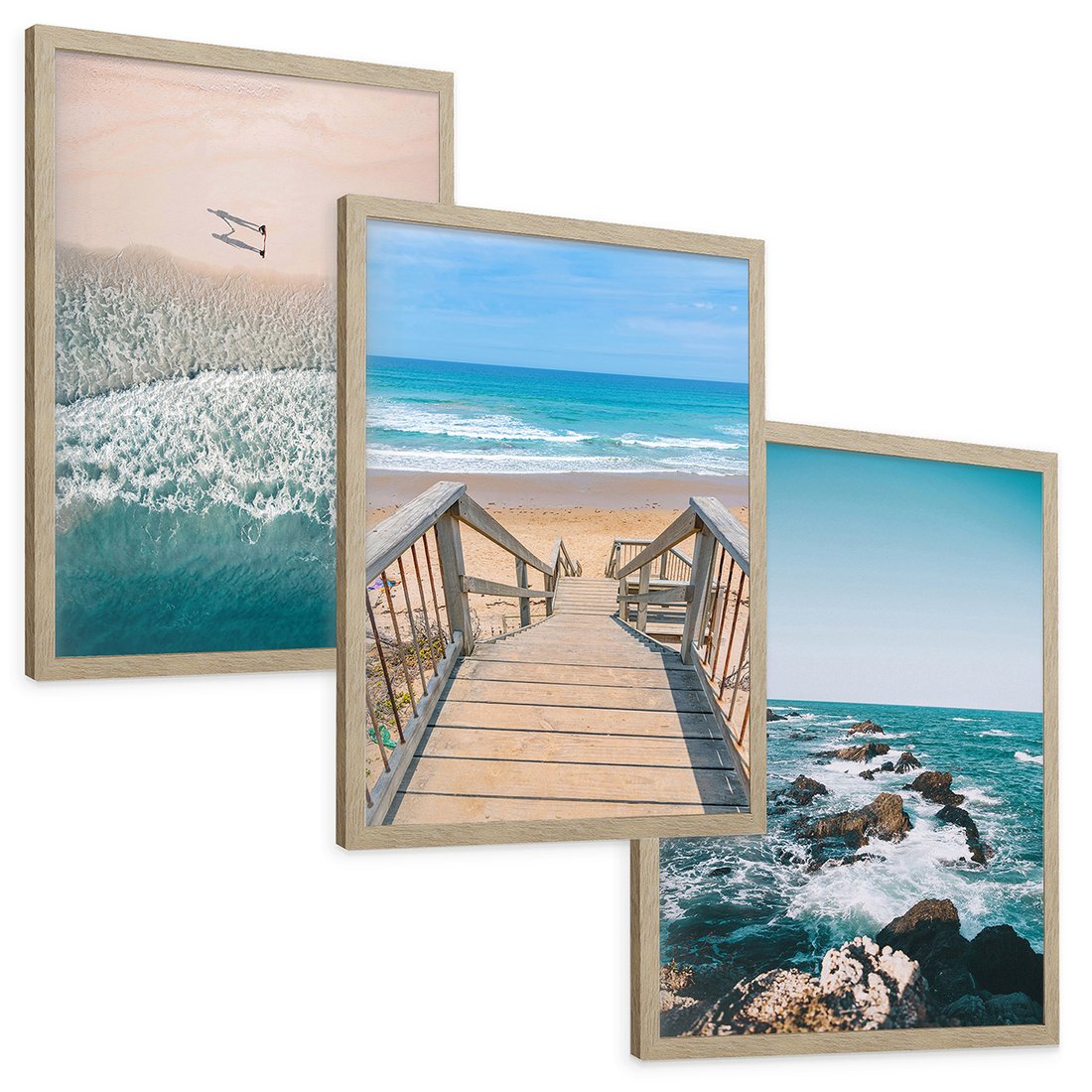 Zestaw obrazy w ramie, plakaty - plaża, morze, woda - rama drewno