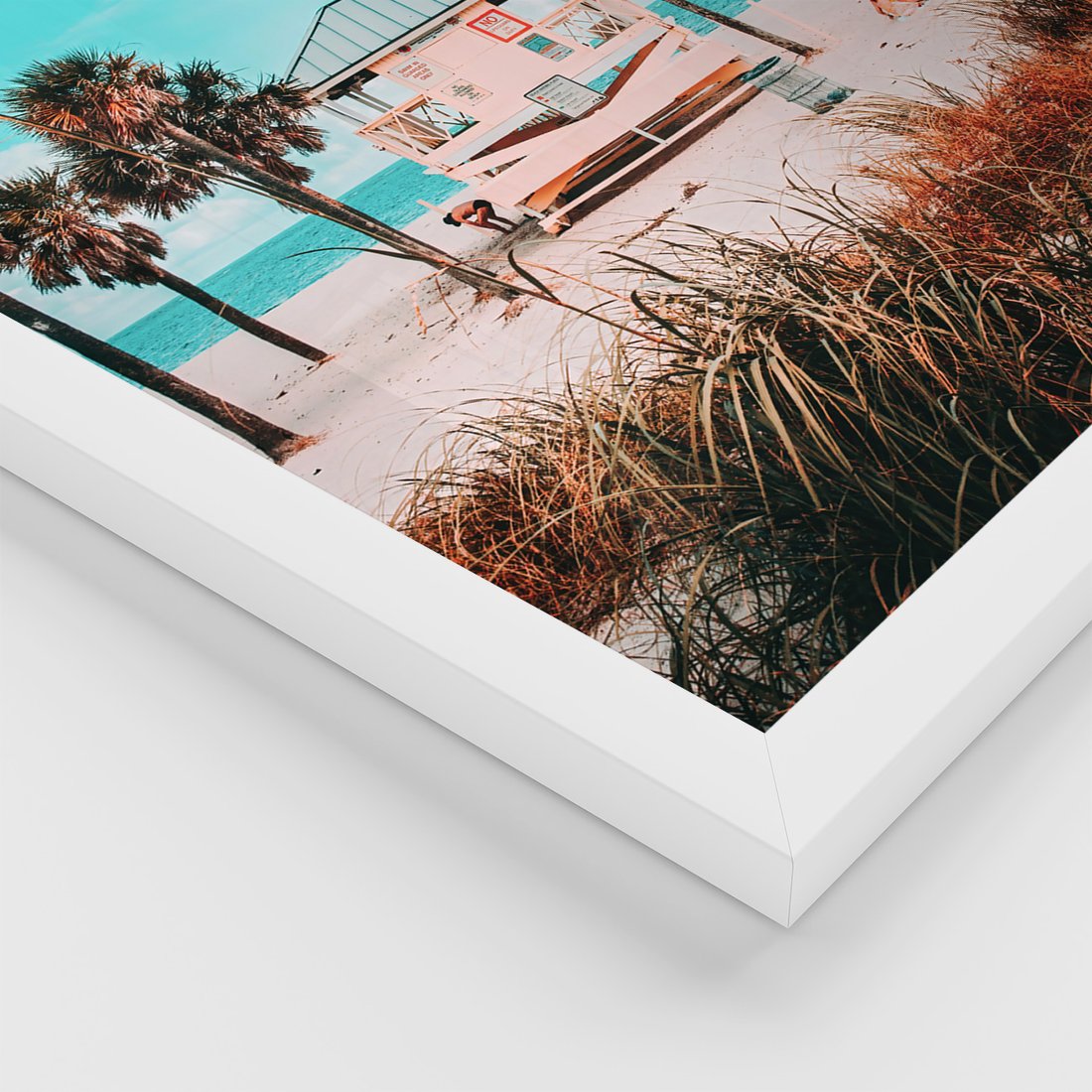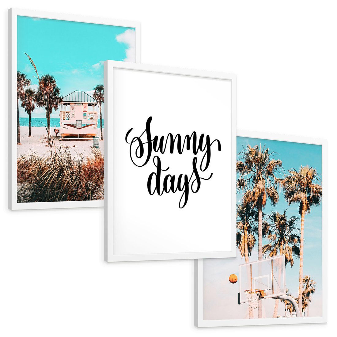 Zestaw obrazy w ramie, plakaty - plaża, palmy, lato - rama biała
