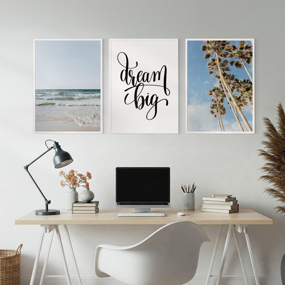 Przenieś piękno sztuki do swojego domu dzięki naszemu starannie skomponowanemu produktowi zestaw obrazów plaża,palmy,morze. Każdy plakat, oprawiony w elegancką ramę, łączy w sobie estetykę i trwałość. Uniwersalne wzornictwo sprawia, że te dekoracje ścienne doskonale komponują się z różnymi stylami wnętrz, od nowoczesnych po klasyczne. Łatwość montażu pozwala na szybką i bezproblemową metamorfozę Twojej przestrzeni. To również idealny pomysł na wyszukany prezent, który z pewnością zachwyci.