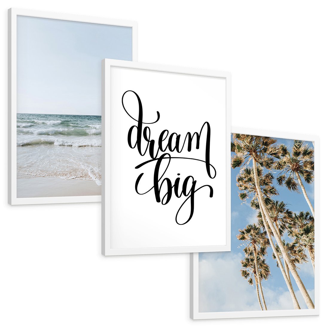 Zestaw obrazy w ramie, plakaty - plaża,palmy,morze - rama biała