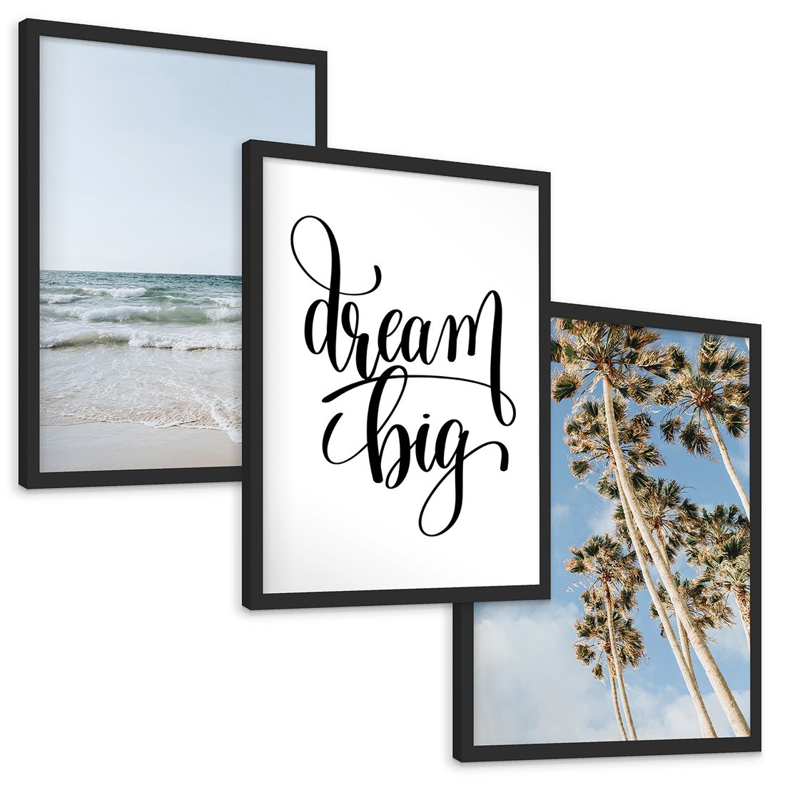 Zestaw obrazy w ramie, plakaty - plaża,palmy,morze - rama czarna