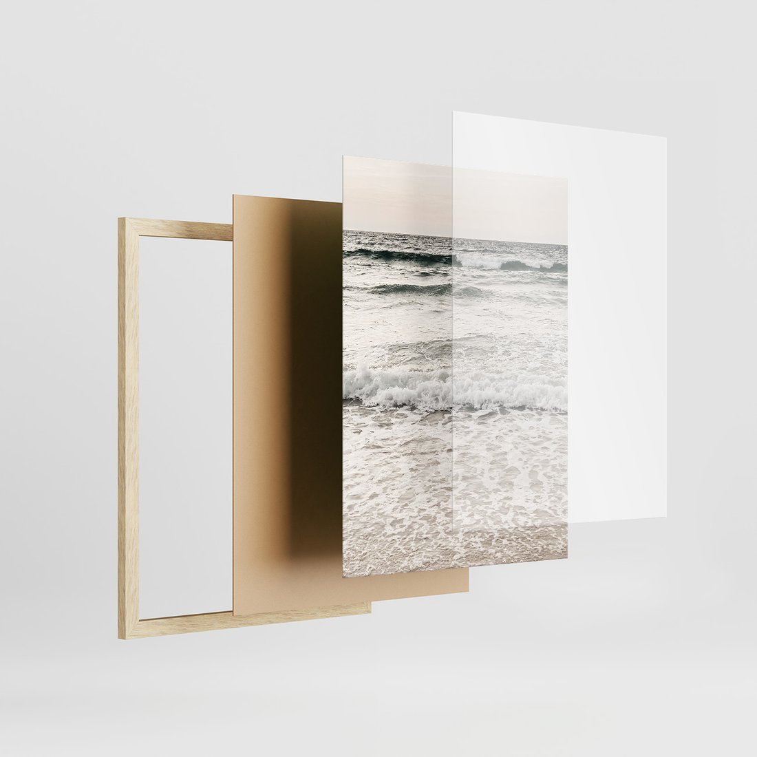 Zestaw obrazy w ramie, plakaty - plaża, piasek, morze - rama drewno
