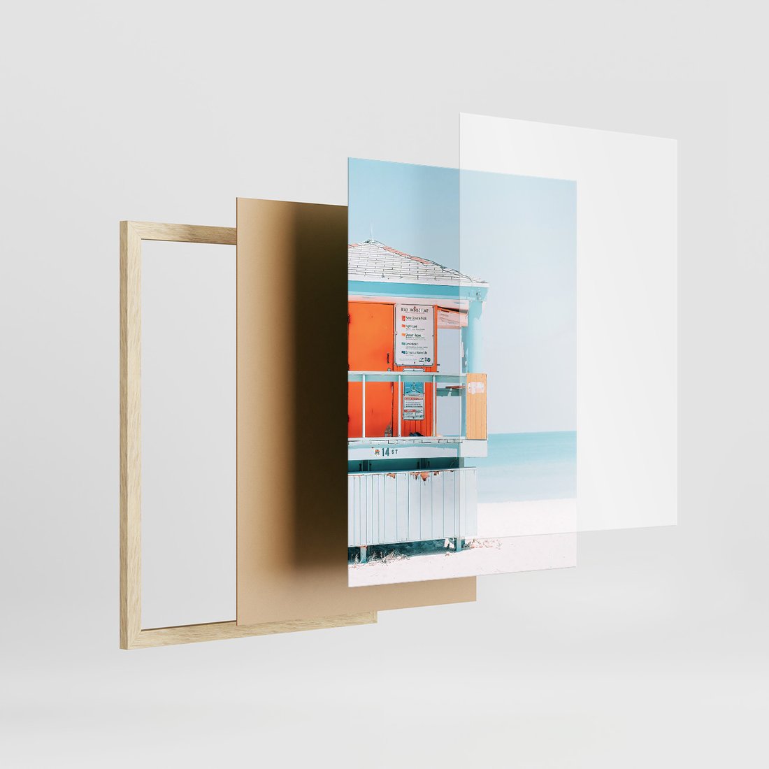 Zestaw obrazy w ramie, plakaty - plaża, wakacje, lato - rama drewno