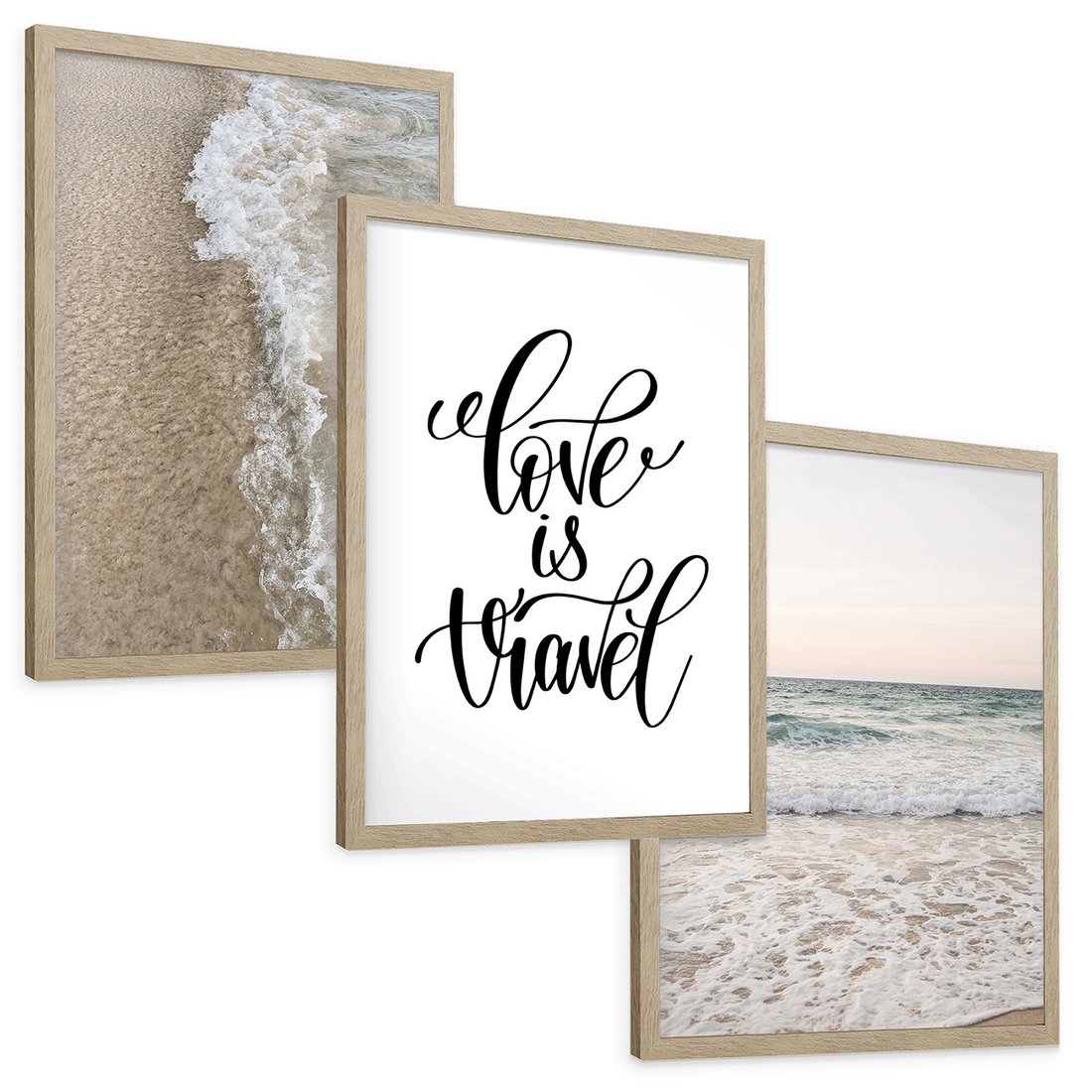 Zestaw obrazy w ramie, plakaty - plaża, woda, morze - rama drewno