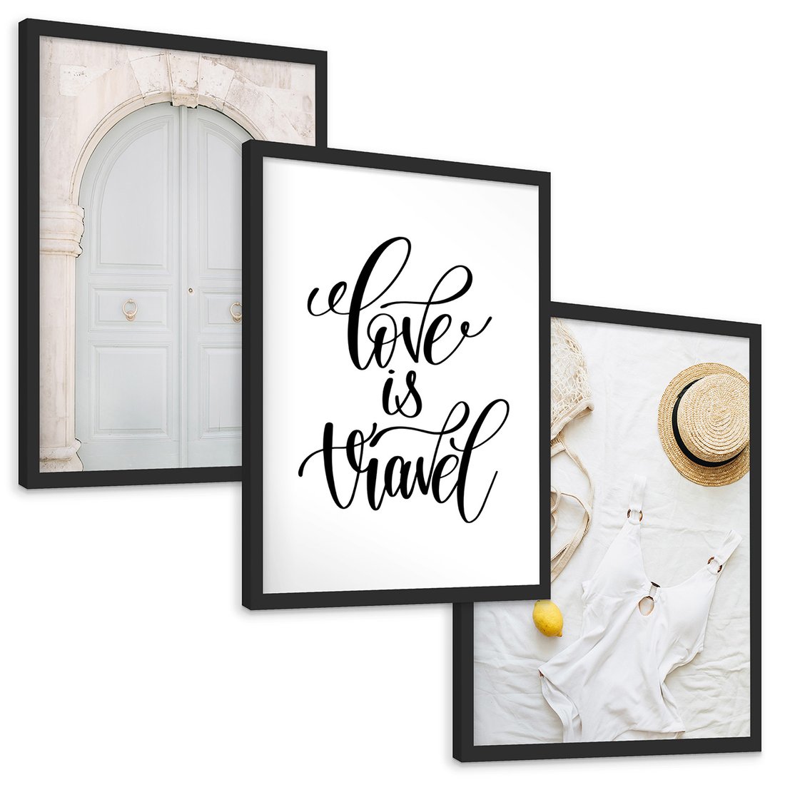 Zestaw obrazy w ramie, plakaty - podróż, cytryny, drzwi - rama czarna