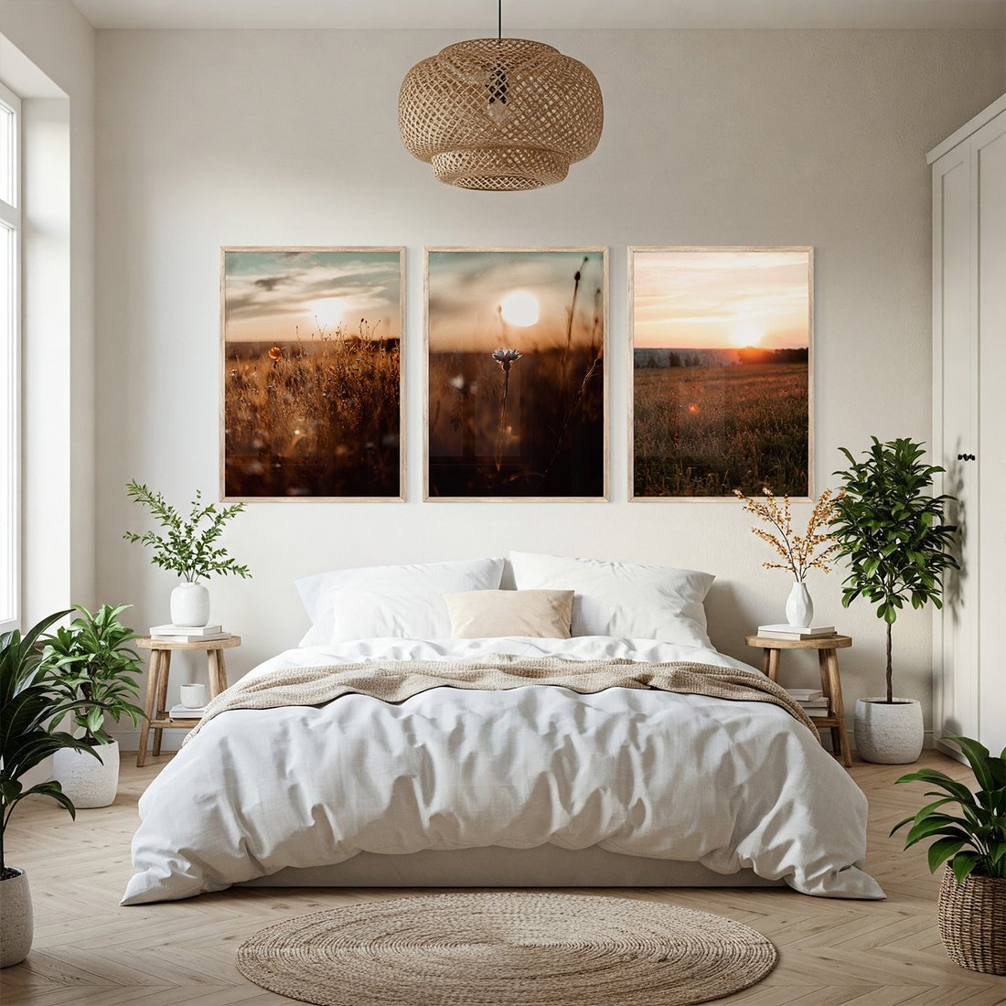 - Zestaw obrazy w ramie, plakaty - pole, kwiaty, słońce