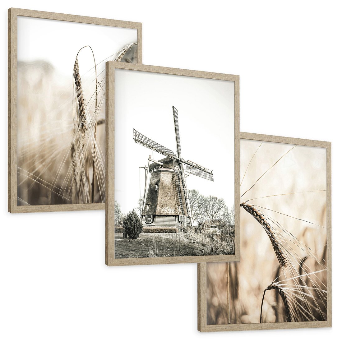 Zestaw obrazy w ramie, plakaty - pole, wieś, żniwa - rama drewno