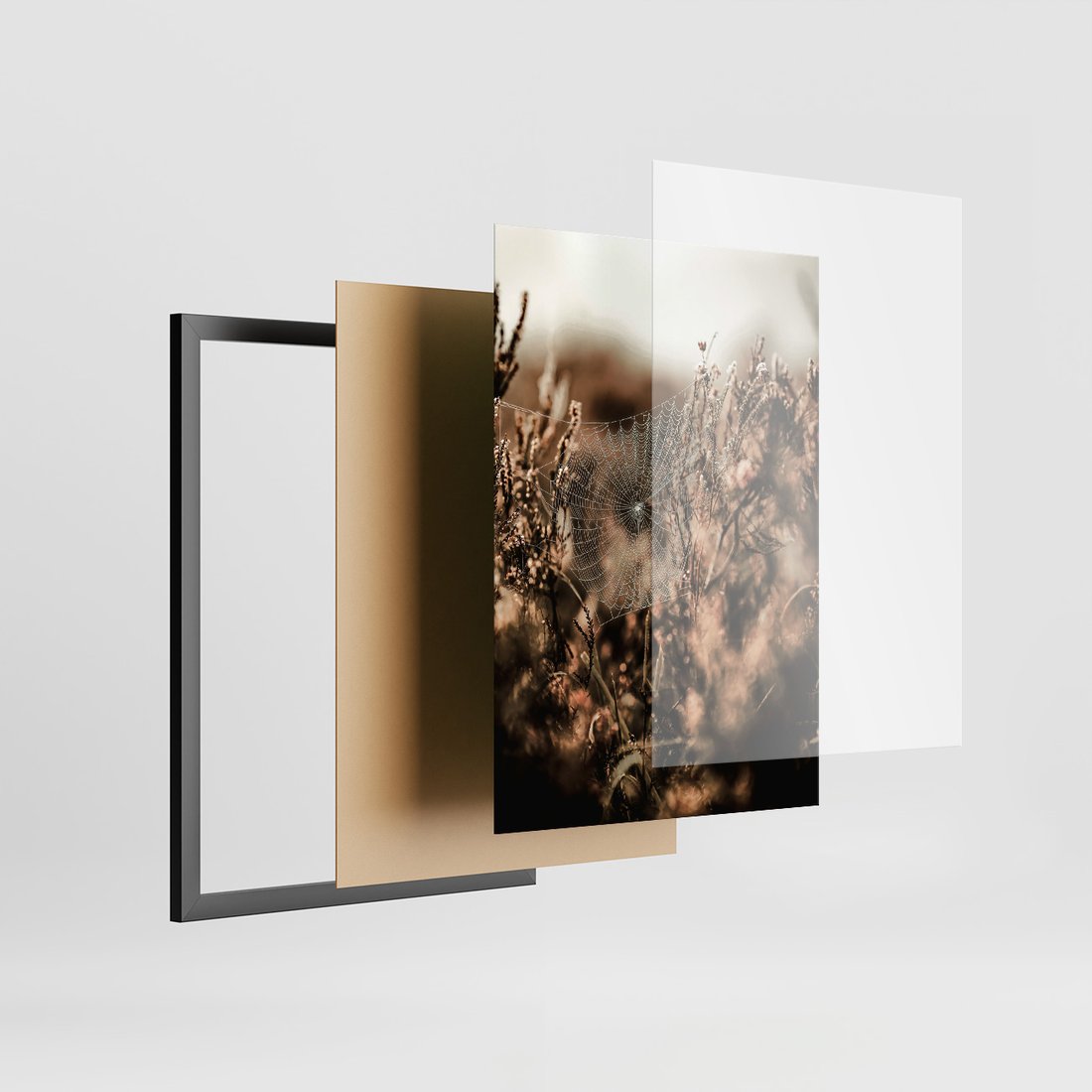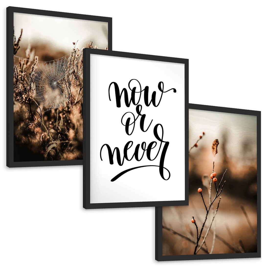 Zestaw obrazy w ramie, plakaty - przyroda, pajęczyna, owoce - rama czarna