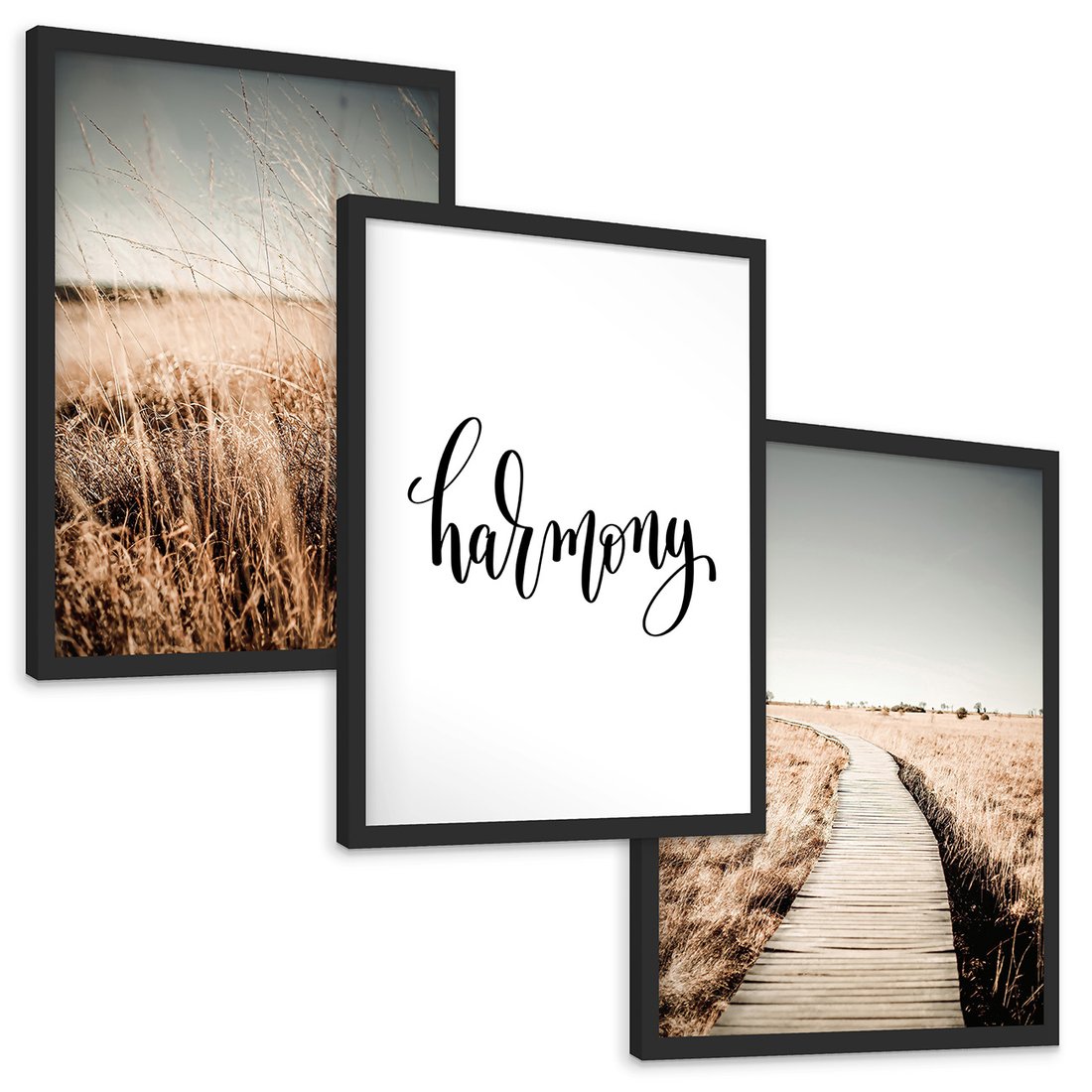 Zestaw obrazy w ramie, plakaty - przyroda, polne, krajobraz - rama czarna