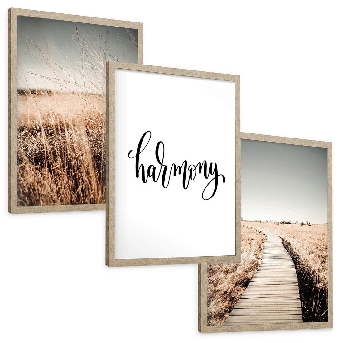 Zestaw obrazy w ramie, plakaty - przyroda, polne, krajobraz - rama drewno