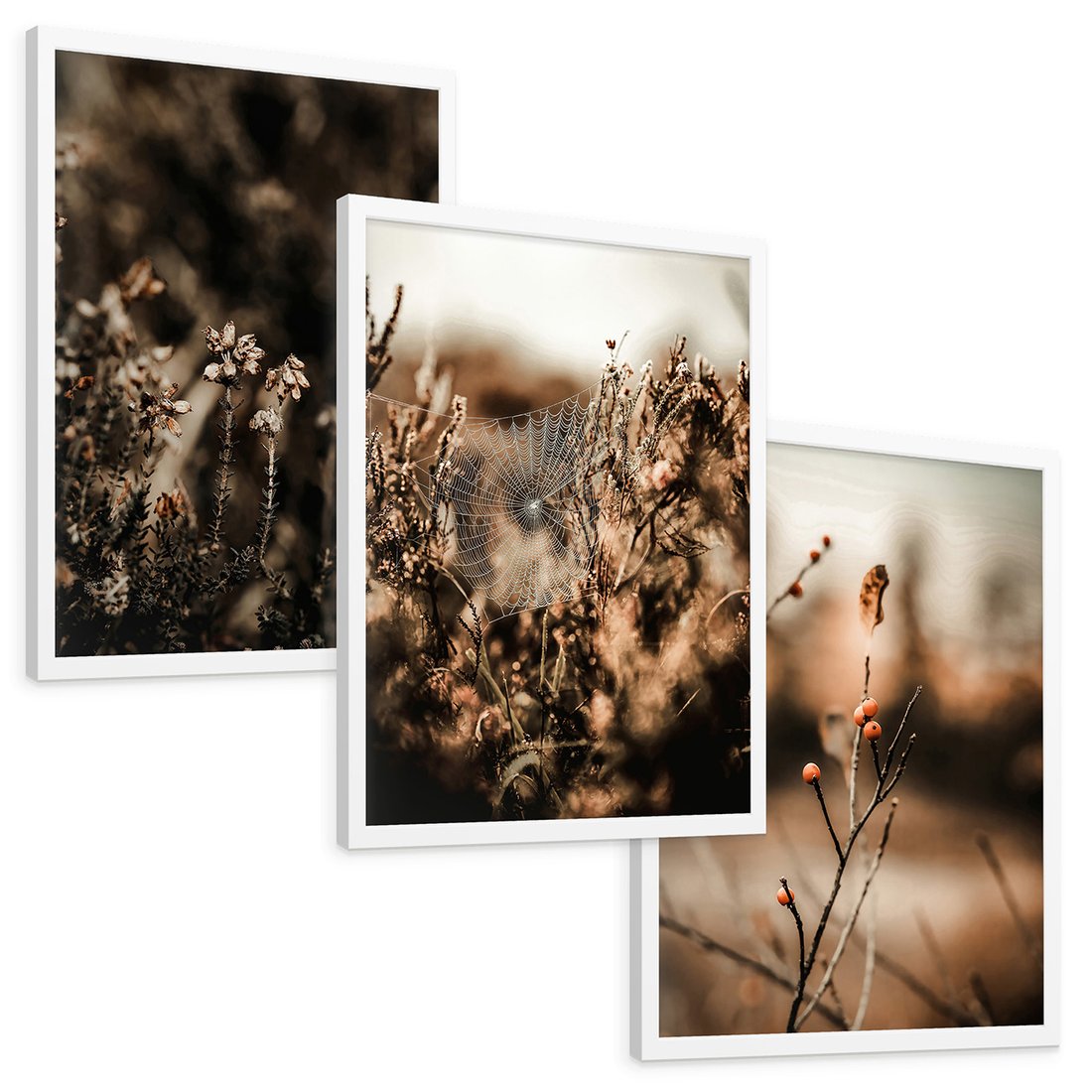 Zestaw obrazy w ramie, plakaty - przyroda, rośliny, natura - rama biała