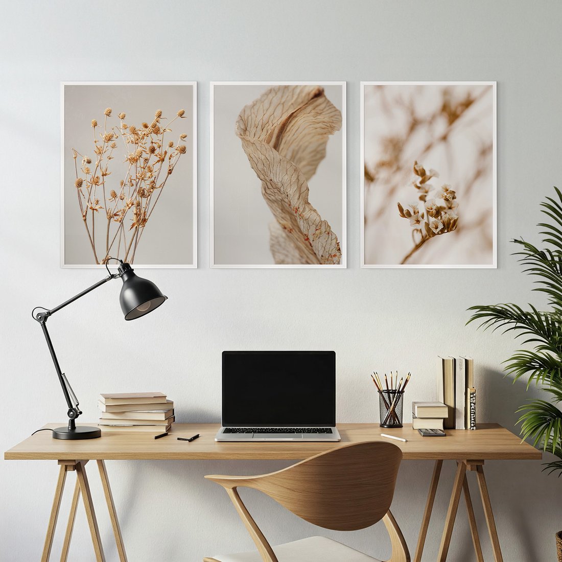 Zestaw obrazy w ramie, plakaty - roślina, kwiat, suszone - rama biała