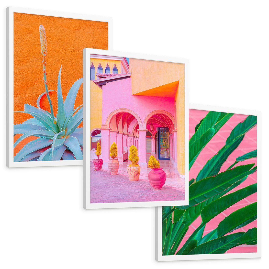 • Zestaw obrazy w ramie, plakaty - rośliny, architektura, tropikalne