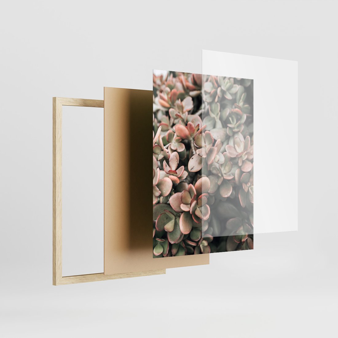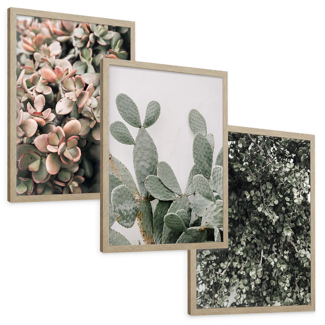Zestaw obrazy w ramie, plakaty - rośliny, kaktus, liście - rama drewno
