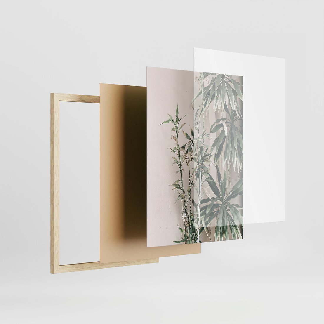 Zestaw obrazy w ramie, plakaty - rośliny, kwiaty, liście - rama drewno