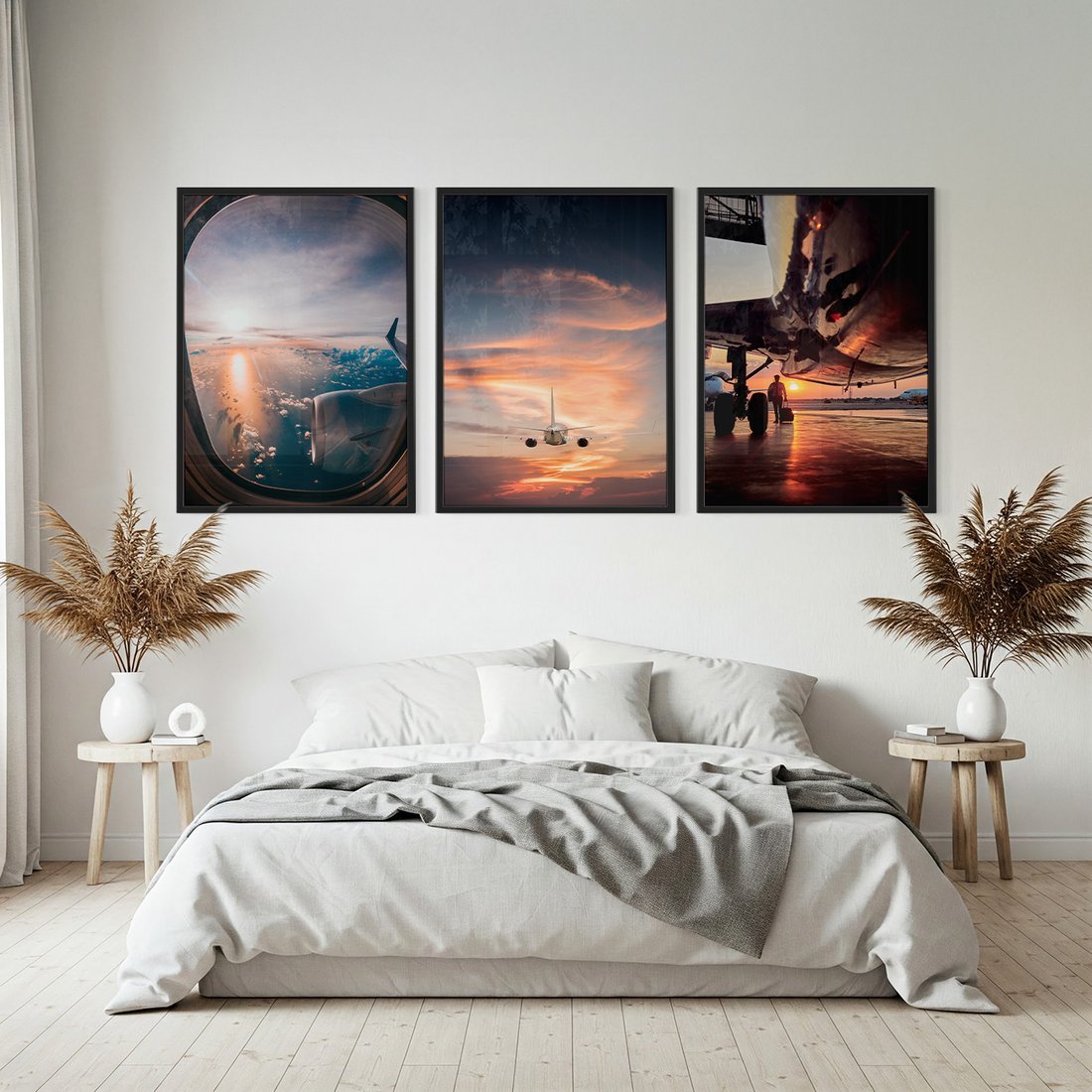 • Zestaw obrazy w ramie, plakaty - samolot, niebo, podróż