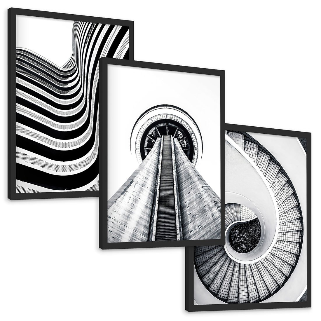Zestaw obrazy w ramie, plakaty - struktura, schody, architektura - rama czarna