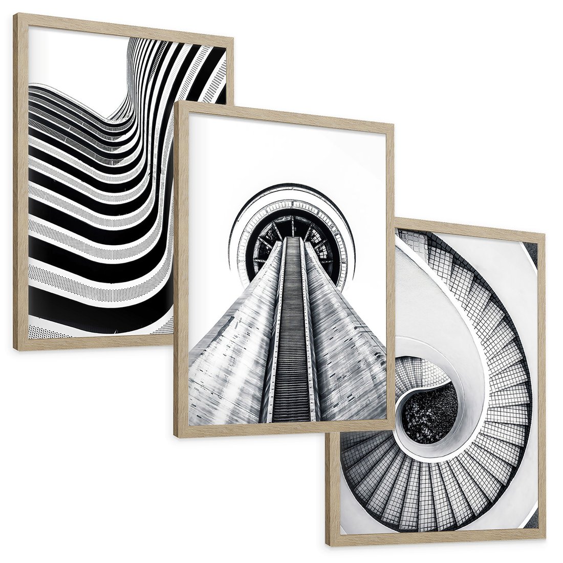 - Zestaw obrazy w ramie, plakaty - struktura, schody, architektura