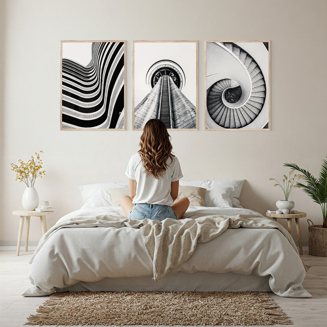 Przenieś piękno sztuki do swojego domu dzięki naszemu starannie skomponowanemu produktowi zestaw obrazów struktura, schody, architektura. Każdy plakat, oprawiony w elegancką ramę, łączy w sobie estetykę i trwałość. Uniwersalne wzornictwo sprawia, że te dekoracje ścienne doskonale komponują się z różnymi stylami wnętrz, od nowoczesnych po klasyczne. Łatwość montażu pozwala na szybką i bezproblemową metamorfozę Twojej przestrzeni. To również idealny pomysł na wyszukany prezent, który z pewnością zachwyci.