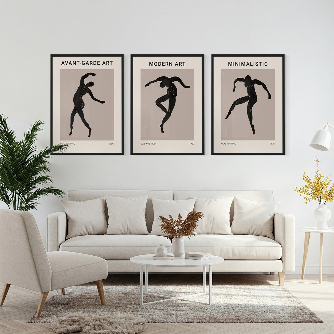 Zestaw obrazy w ramie, plakaty - sztuka, postać, taniec - rama czarna