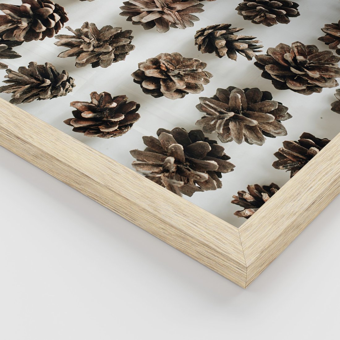 Zestaw obrazy w ramie, plakaty - szyszki, jabłka, zima - rama drewno