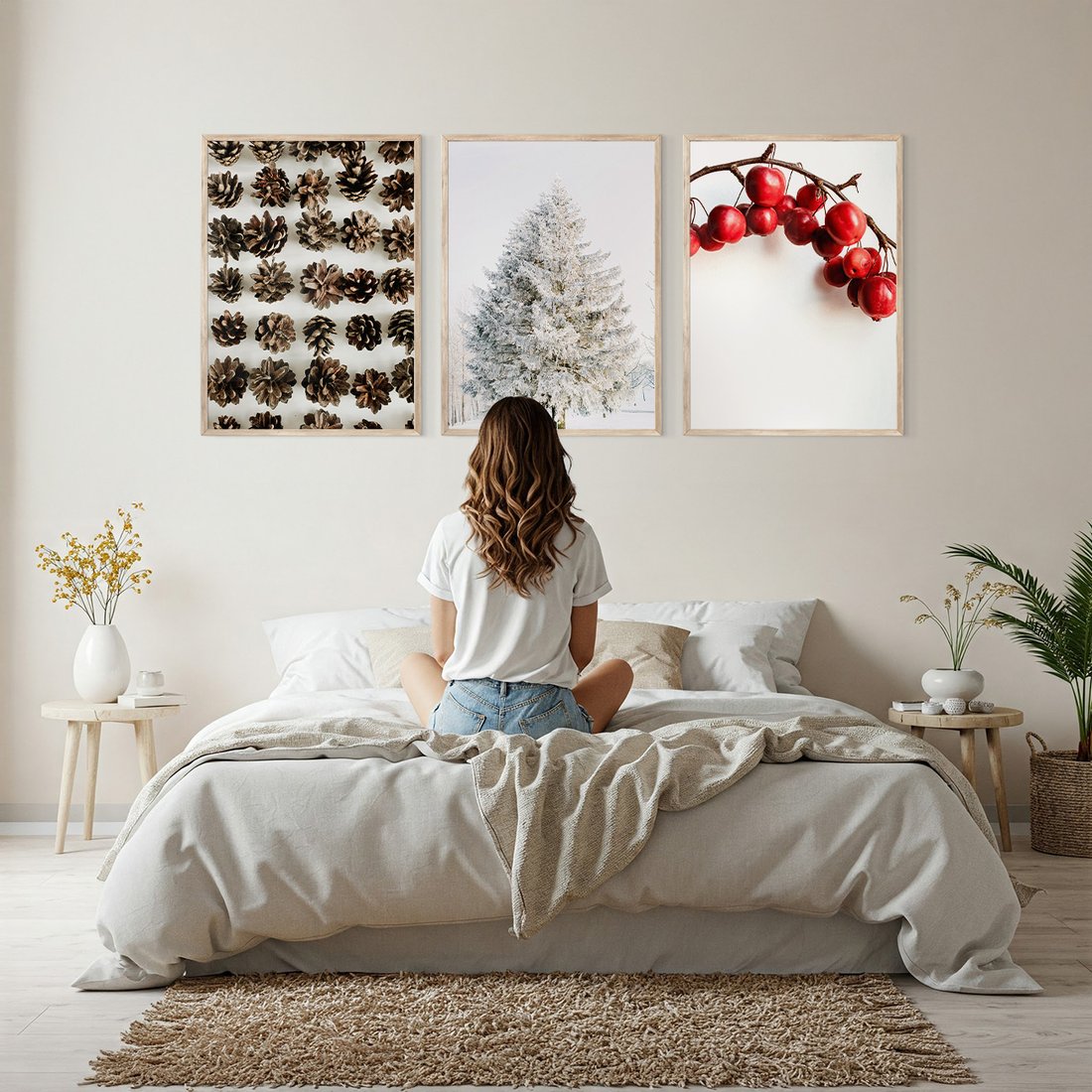 Przenieś piękno sztuki do swojego domu dzięki naszemu starannie skomponowanemu produktowi zestaw obrazów szyszki, jabłka, zima. Każdy plakat, oprawiony w elegancką ramę, łączy w sobie estetykę i trwałość. Uniwersalne wzornictwo sprawia, że te dekoracje ścienne doskonale komponują się z różnymi stylami wnętrz, od nowoczesnych po klasyczne. Łatwość montażu pozwala na szybką i bezproblemową metamorfozę Twojej przestrzeni. To również idealny pomysł na wyszukany prezent, który z pewnością zachwyci.
