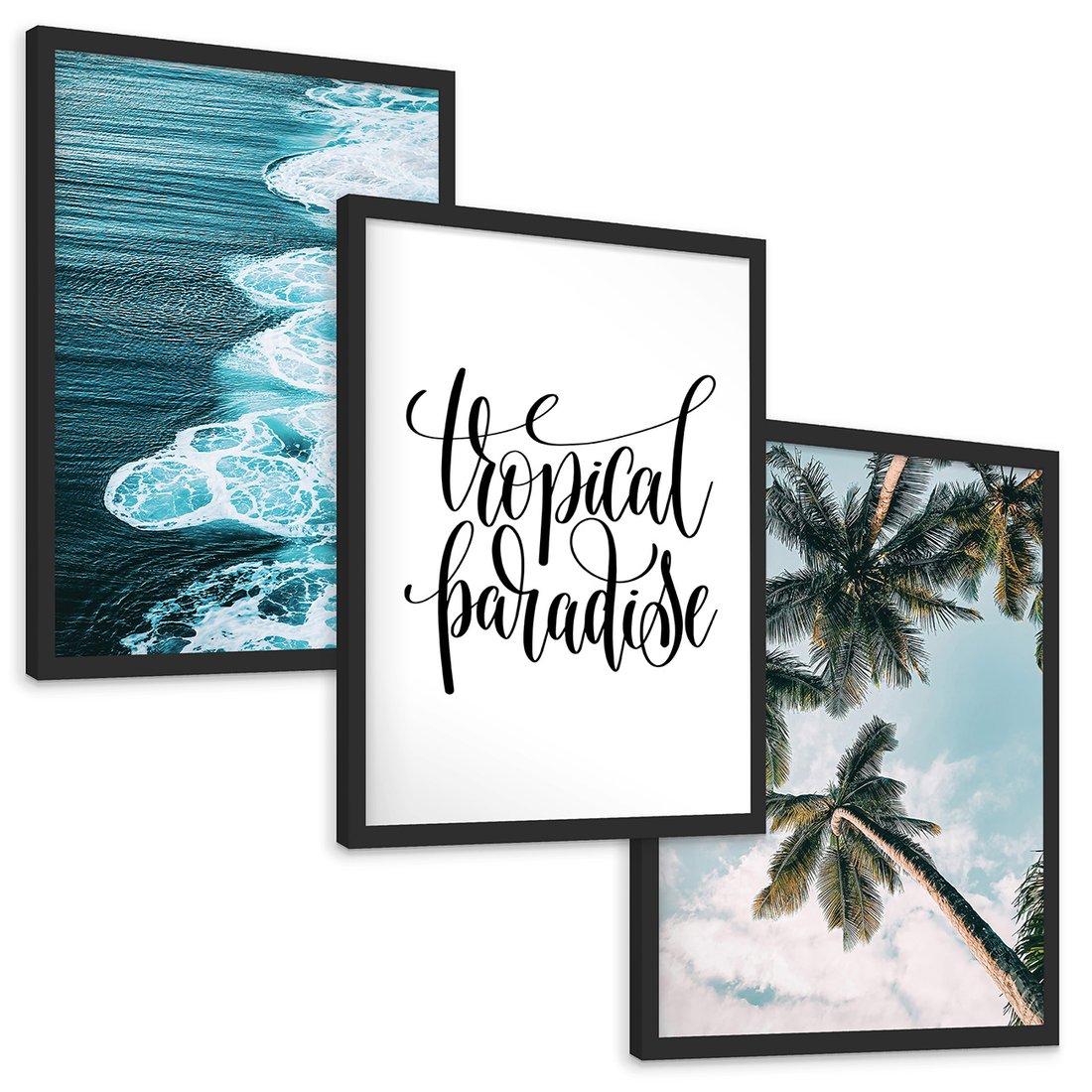 Zestaw obrazy w ramie, plakaty - tropikalny, morze, palmy - rama czarna