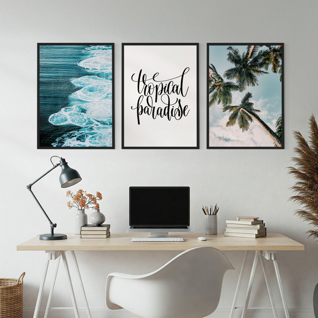 • Zestaw obrazy w ramie, plakaty - tropikalny, morze, palmy