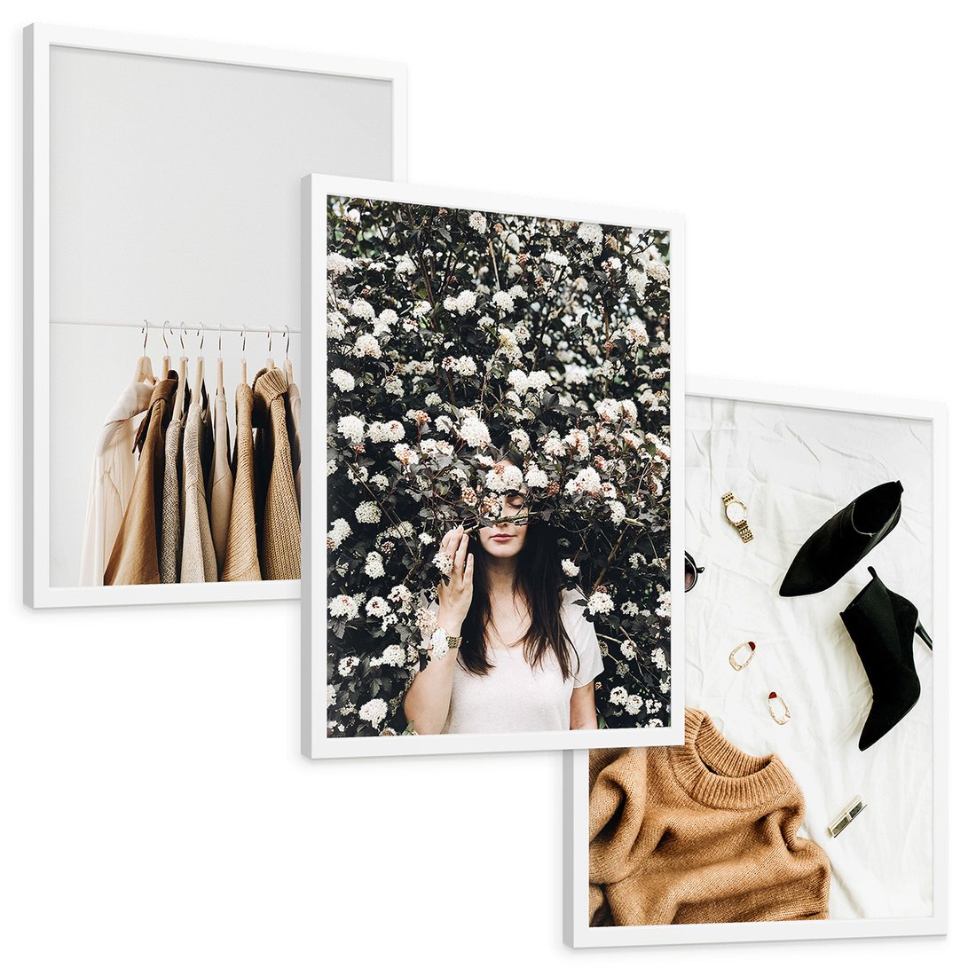 Zestaw obrazy w ramie, plakaty - ubrania, kobieta, styl - rama biała