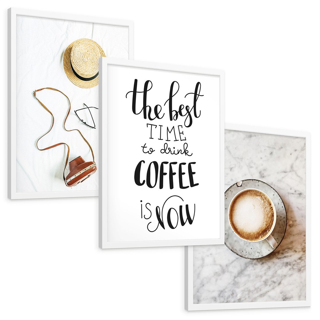 Zestaw obrazy w ramie, plakaty - vintage, kawa, tekst - rama biała