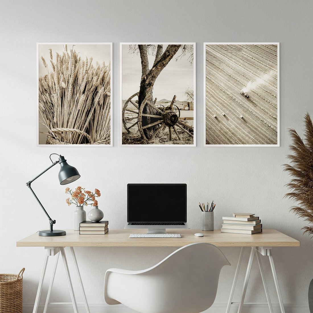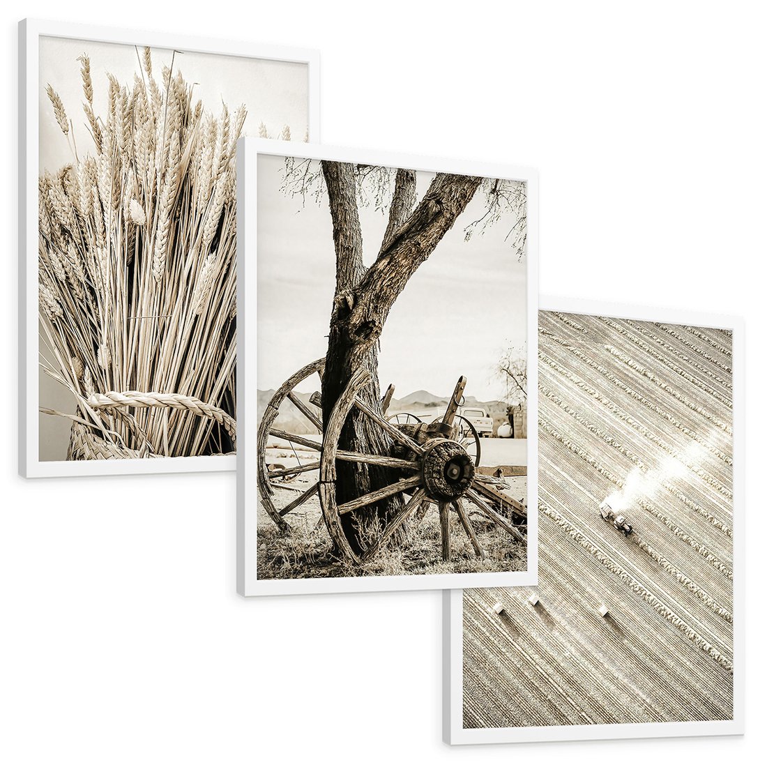 Zestaw obrazy w ramie, plakaty - wieś, rolnictwo, plony - rama biała