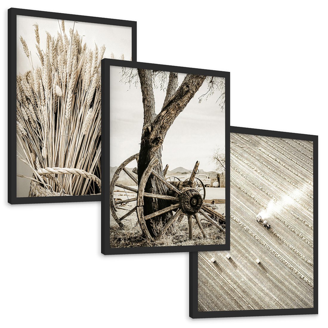 Zestaw obrazy w ramie, plakaty - wieś, rolnictwo, plony - rama czarna