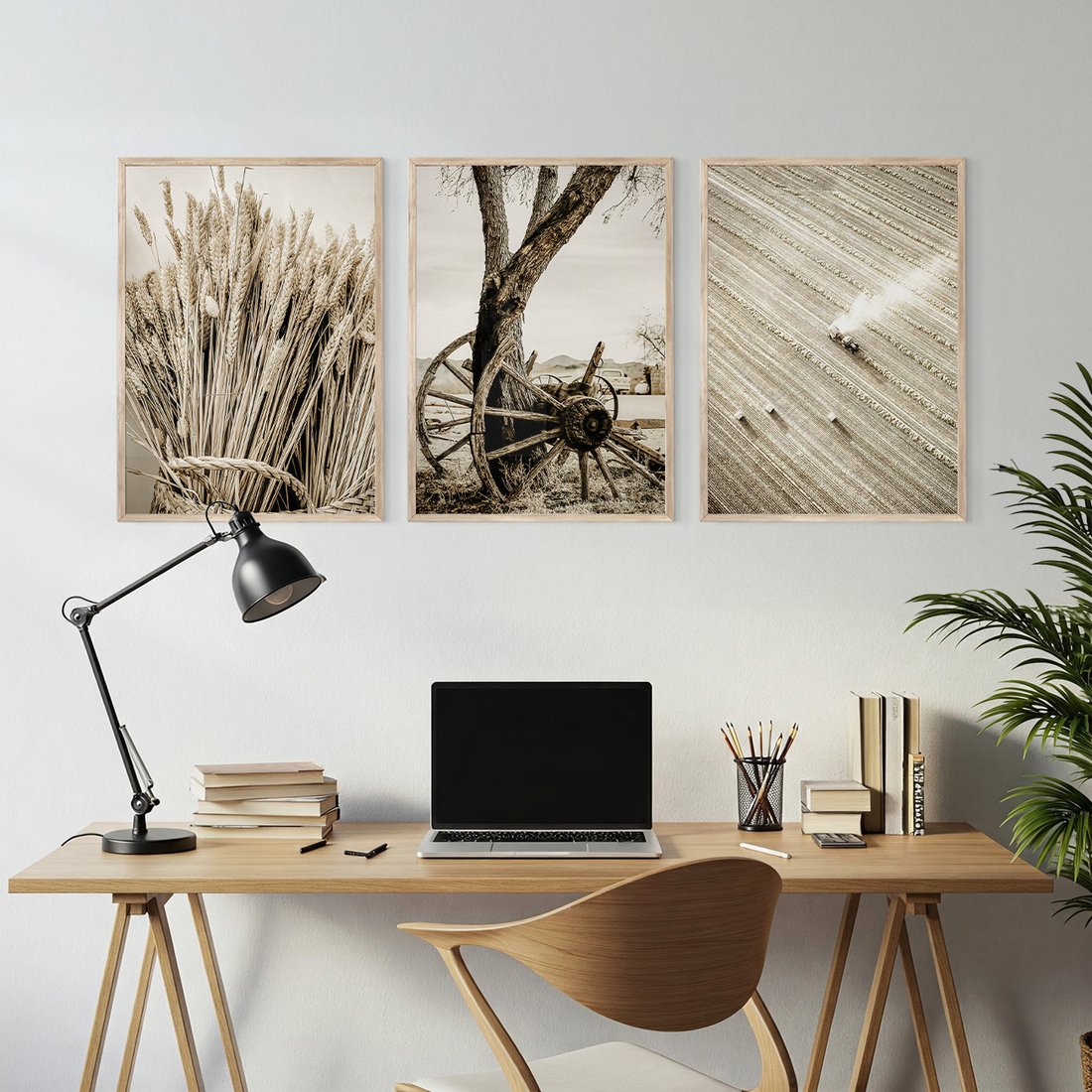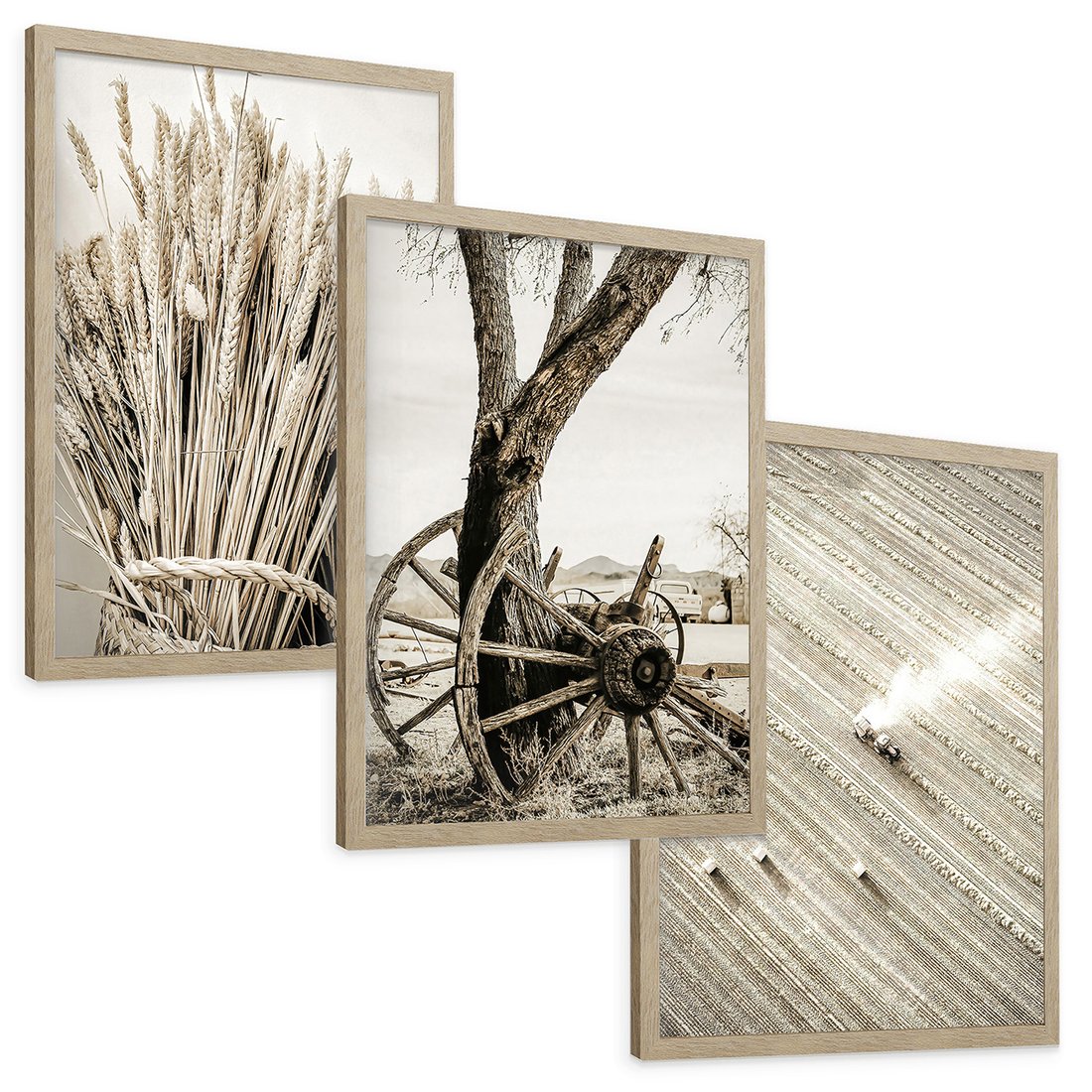 Zestaw obrazy w ramie, plakaty - wieś, rolnictwo, plony - rama drewno