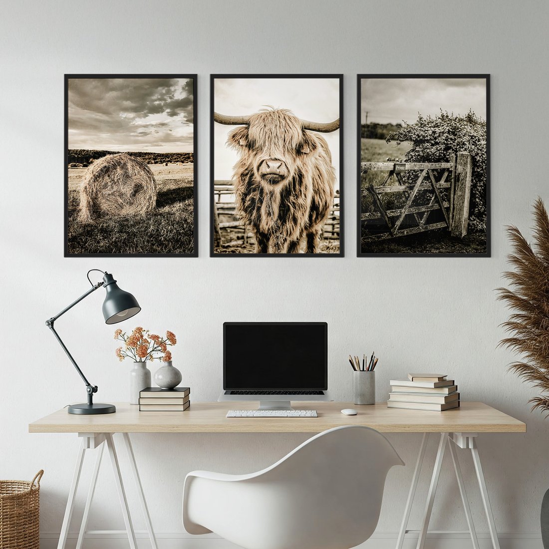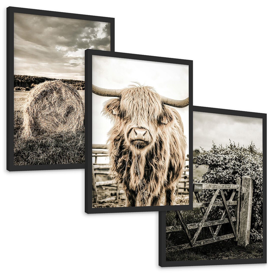 Zestaw obrazy w ramie, plakaty - wieś, zwierzęta, krajobraz - rama czarna