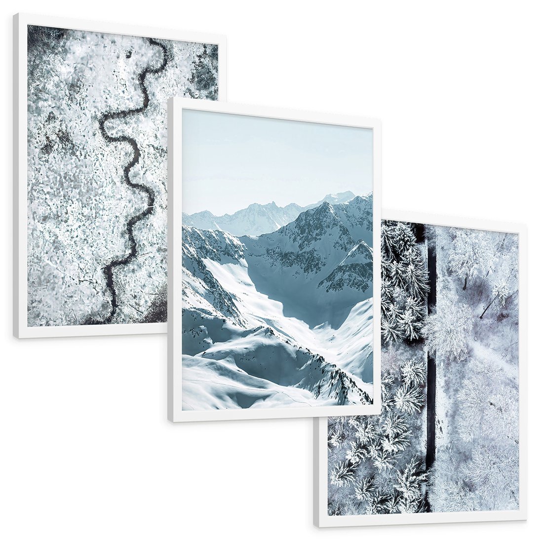 - Zestaw obrazy w ramie, plakaty - zima, śnieg, góry