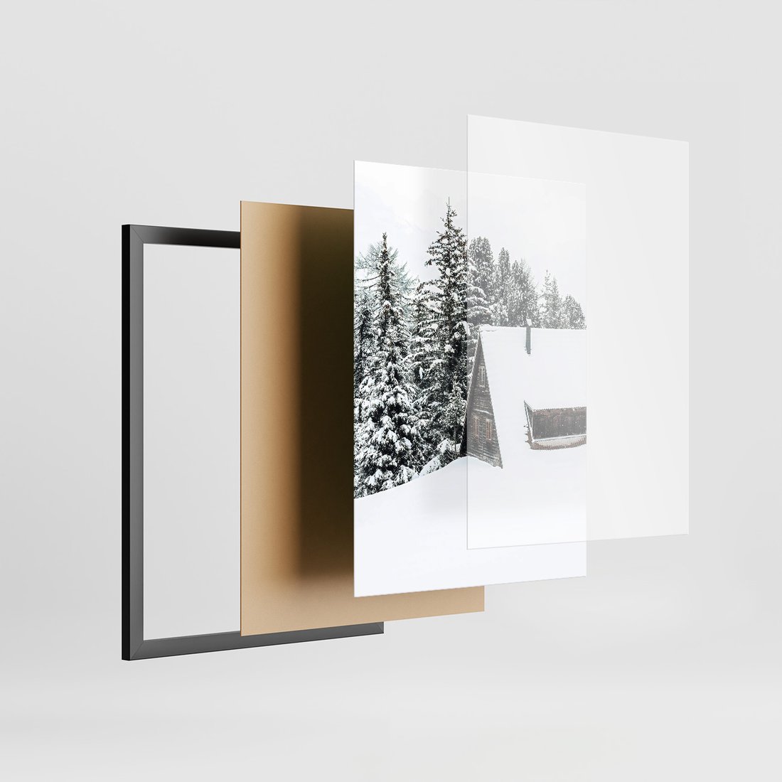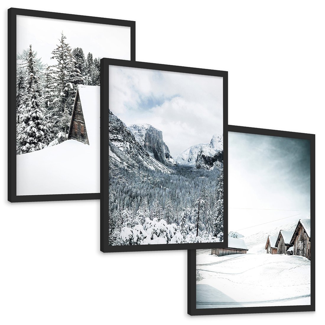 Zestaw obrazy w ramie, plakaty - zima, śnieg, góry - rama czarna