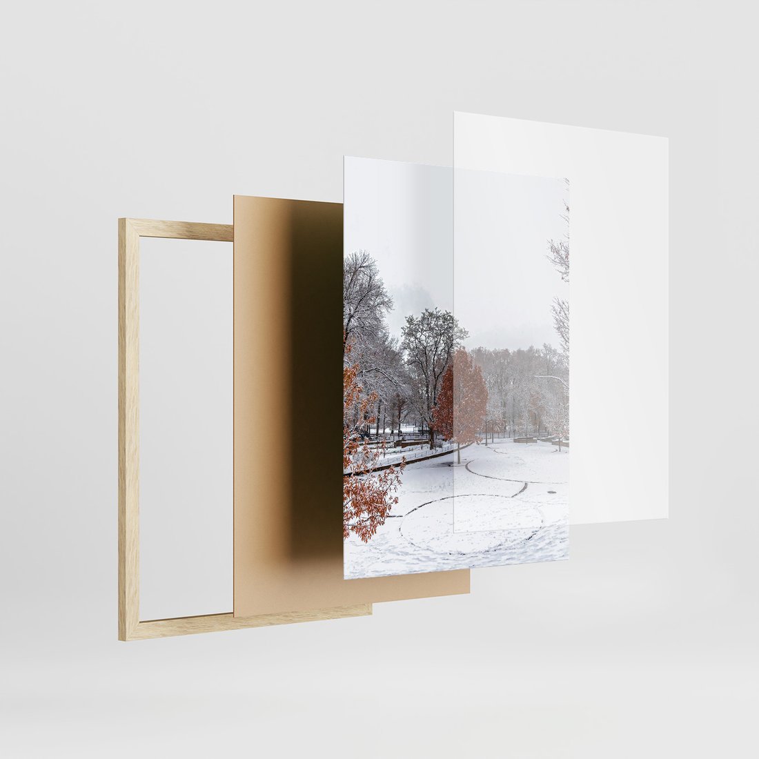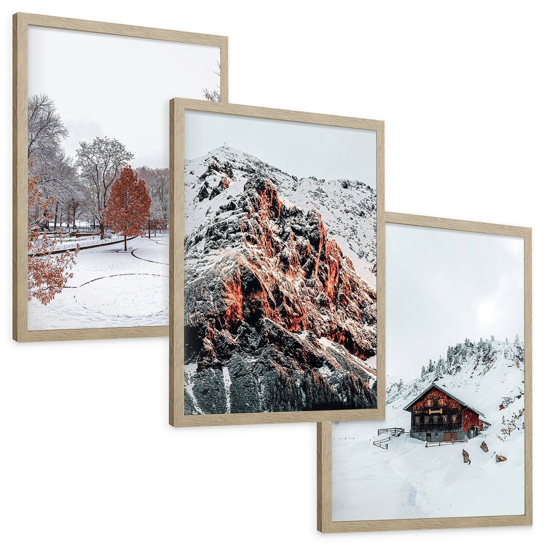 Zestaw obrazy w ramie, plakaty - zima, śnieg, góry - rama drewno