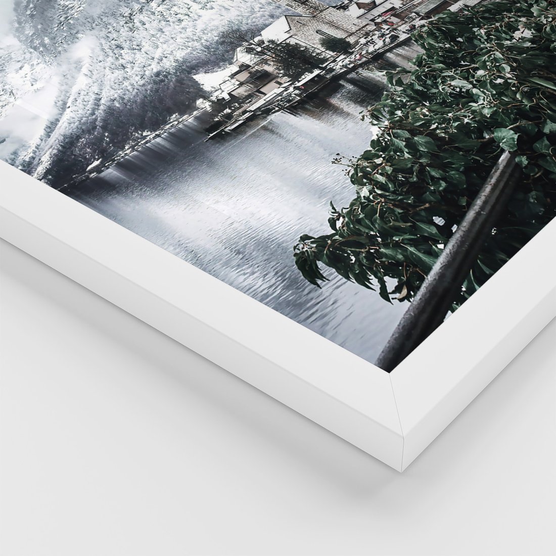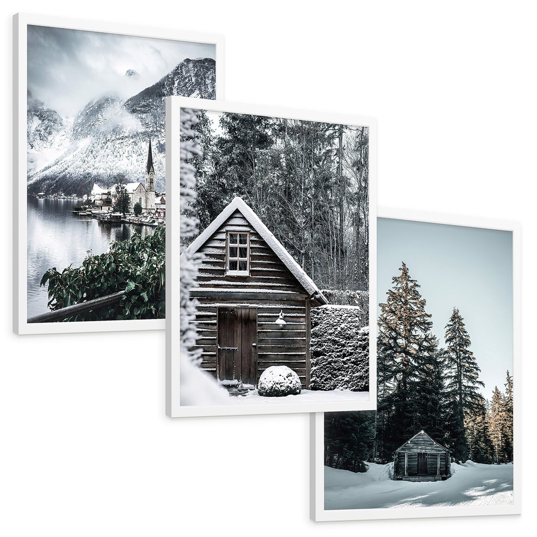 Zestaw obrazy w ramie, plakaty - zima, śnieg, krajobraz - rama biała