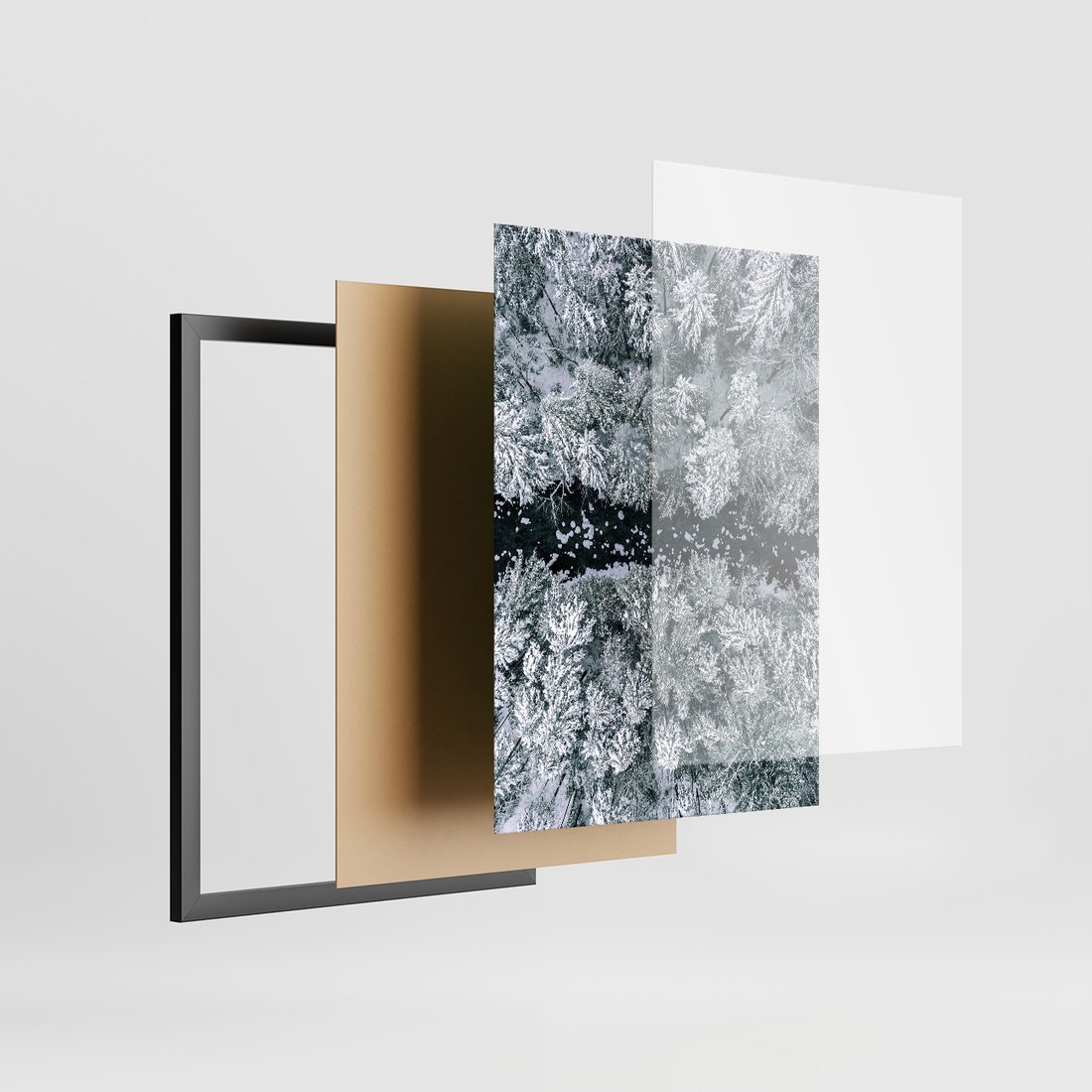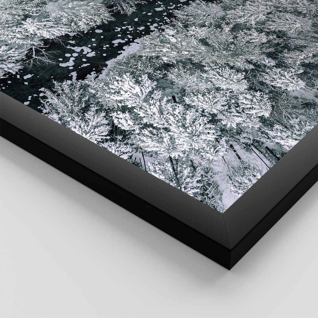 Zestaw obrazy w ramie, plakaty - zima, śnieg, las - rama czarna