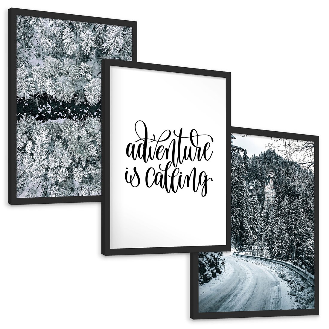 - Zestaw obrazy w ramie, plakaty - zima, śnieg, las